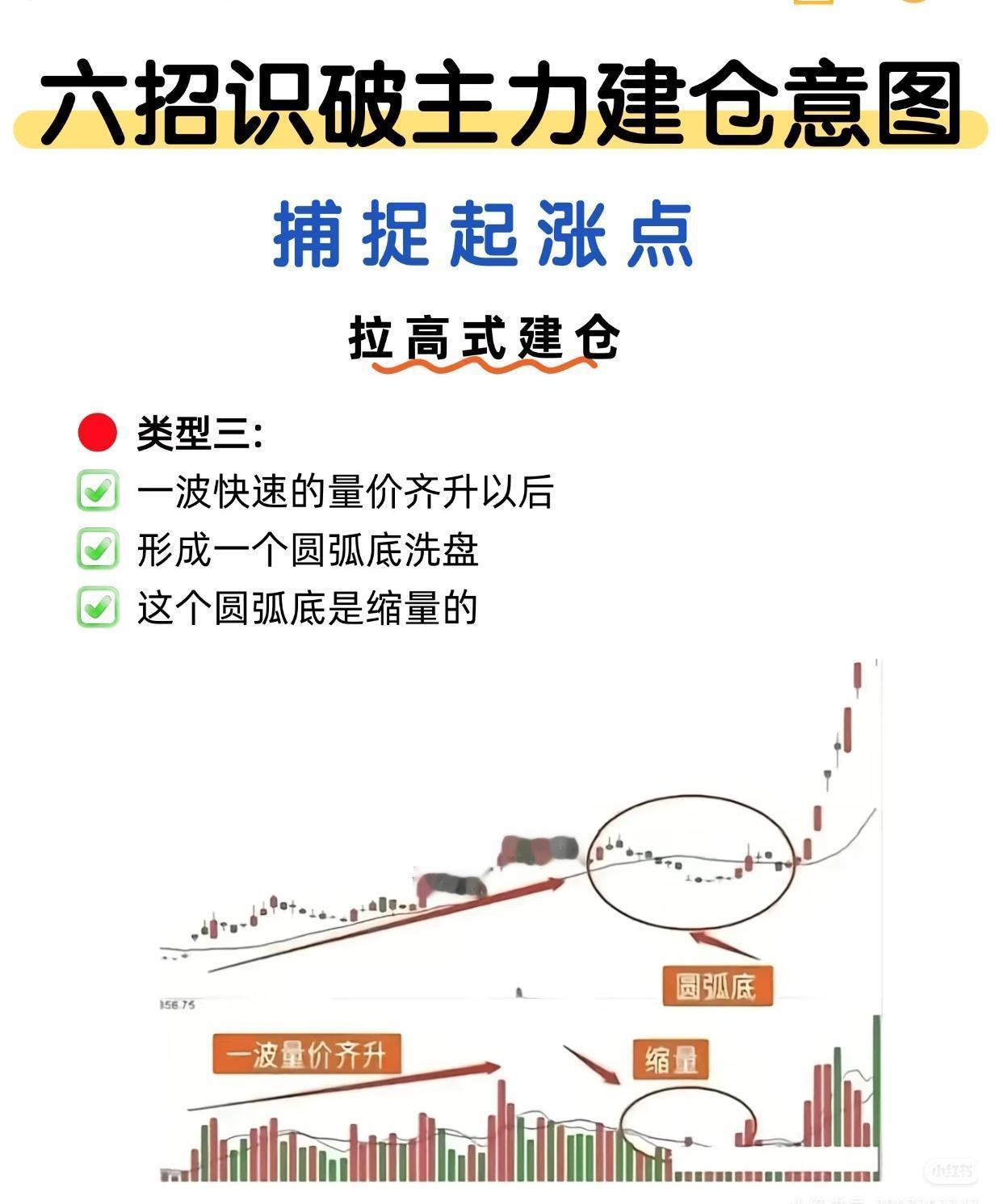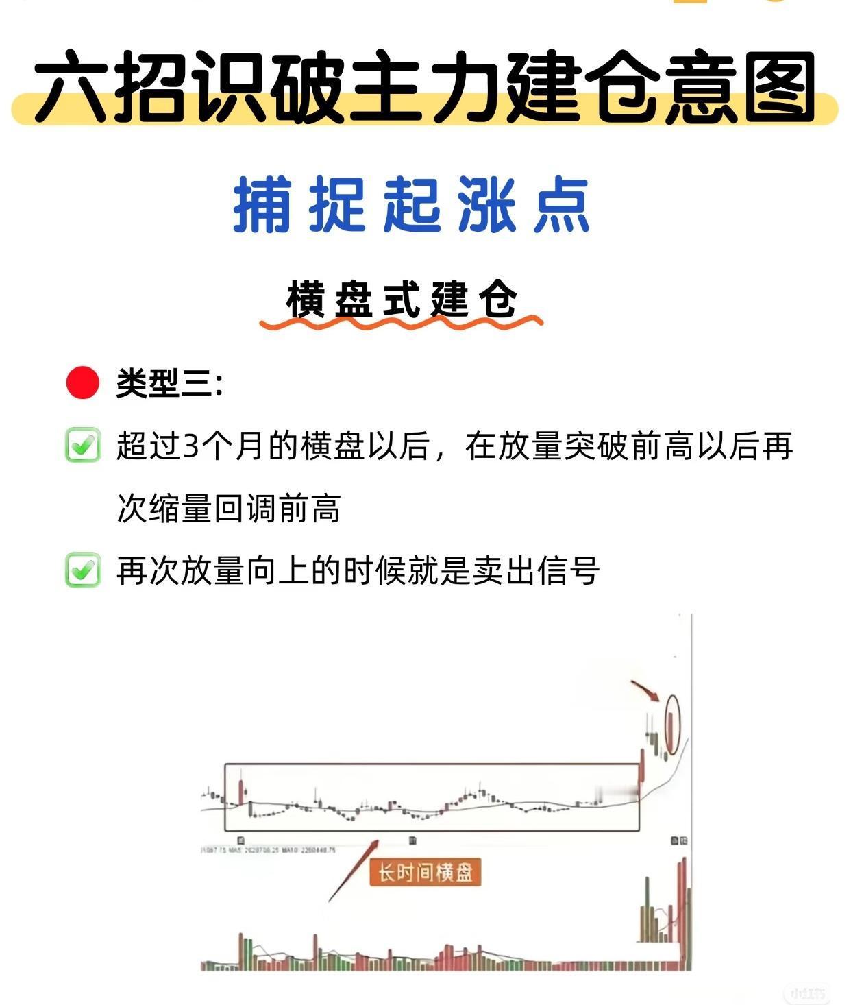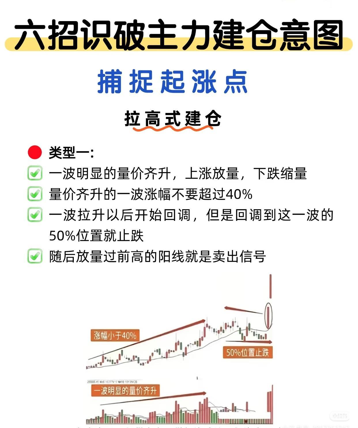 “六招识破主力建仓意图”,重点讲解了“横盘式建仓”与“拉高式建仓”两种类型及其细分特征,助力捕捉起涨点。横盘式建仓包含三种类型:类型一需具备长达3个月以上的横盘区间,且在正式启动前有故意破位的深V洗盘;类型二表现为横盘后股价过前高,形成后量超前量的大阳线继续向上,往往直接启动,通常长时间横盘时股价整体在20%以内震荡;类型三则是超过3个月的横盘后,先放量突破前高再缩量回调前高,当再次放量向上时便是卖出信号。拉高式建仓也有三种类型:类型一有一波明显量价齐升(上涨放量、下跌缩量),涨幅不超过40%,一波拉升后回调至该波50%位置止跌,随后放量过前高的阳线是卖出信号;类型二呈现一波快速量价齐升且涨幅小于40%,接着快速无量回落到起涨点,再以很小的量能直接启动(小量能体现高控盘);类型三是一波快速量价齐升后,形成缩量圆弧底洗盘。