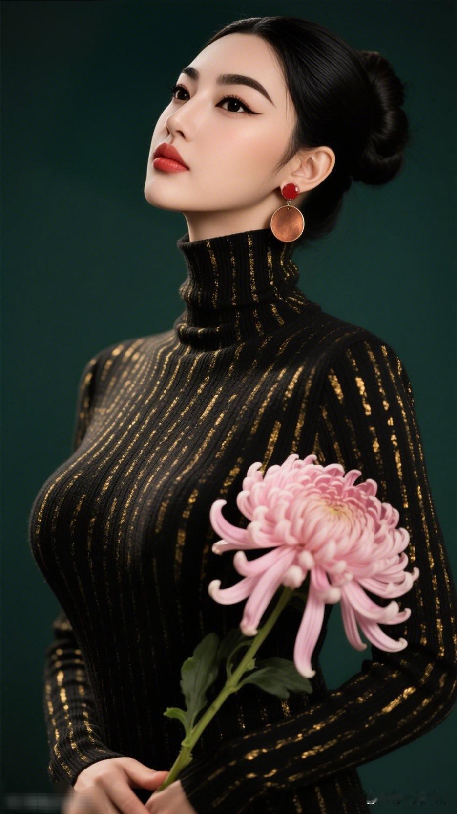 红妆美人倚,花影入梦来。你心目中真正的美人应该是怎样的 优雅黑金连衣裙,搭配粉色花束,尽显女性魅力!