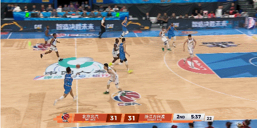 孙铭徽和胡金秋打了个挡拆二人转,反过来赵睿和周琦也来一个,精彩啊北京男篮vs广厦