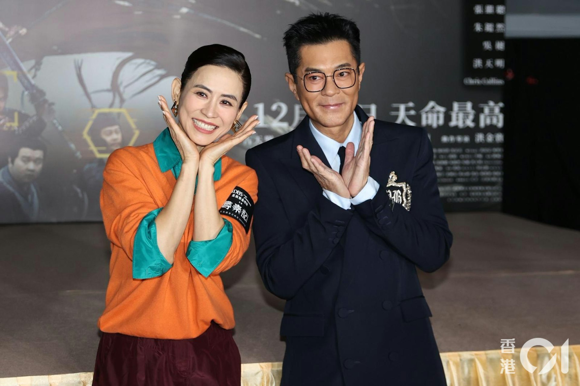 古天乐有求必应,配合宣萱摆出扮可爱托腮造型,真的只有宣萱能治古仔