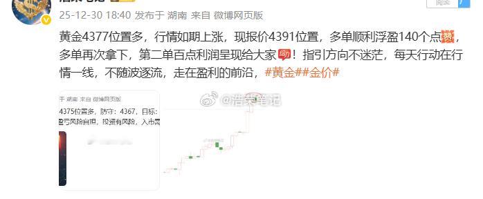 黄金4377位置多,现行情上涨至4399位置,多单已浮盈220个点,护利!日内首单二百点利润已达成,作为一个成功的交易者,不乱于心,坚定思路、方能始终。黄金金价