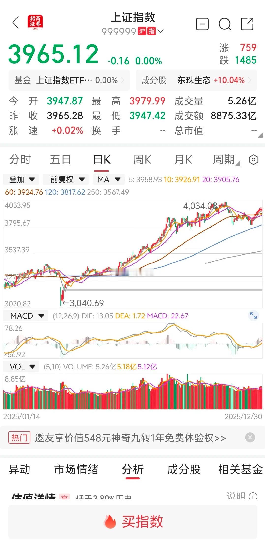 节前最后一个交易日,大盘明天大涨? 大盘受外围利空消息影响,跳空低开。但低开高走,虽然冲高回落,但仍然收盘在5日线上,距离10连阳就差一点点,可以说大盘指数相当稳,又是稳指数,亏个股的一天,今天成交量比昨天放量39亿元,大家持股过节的情绪高涨,今天是节前资金能提现的最后一天,无论是获利了结还是避险资金都已经出去了,明天就是市场存量资金在博弈,明天大盘收年线,指数可定没问题,个股大概率普涨格局,上方压力位暂时看3990点附近。 截止下午收盘,除上证指数和北证50,其他几大指数全红,今天成交量21617亿元,个股涨少跌多,涨跌家数比1840:3479,其中涨停66家,跌停19家,跌幅7个点以上的54家。跌幅5个点以上的129家,跌幅三个点以上的361家。今天指数虽然波动不大,但是个股明显跌多涨少。当然跌幅三个点以上的不是太多。 截止下午收盘,行业板块儿中化纤涨3.23点,石油涨2.19点、通用机械涨1.94点、汽车类,工程机械,有色、电气仪表,半导体等领涨,且这几个板块儿涨幅在一个点以上;公共交通第2.11点、商业连锁跌1.43点,酒店餐饮跌1.40点,多元金融,保险等10个板块跌幅在一个点以上。很明显下午不仅下跌的板块儿增多,而且跌幅扩大。 行业板块中,电气设备资金流出最多69.7亿元,其次是通信设备资金流出55.34亿元,第三有色资金流出34.03亿元;汽车类因流入最多35.22亿元,其次家用电器25.01,第三半导体流入16.69亿元。从资金的流入、流出情况可以看出:资金整体呈流出状态,应在板块间高低切换频繁。有色和电气设备板块儿连续两天资金流出靠前。 目前,大盘指数没有问题,但板块轮动较快,看好手中个股,千万不要追涨杀跌。