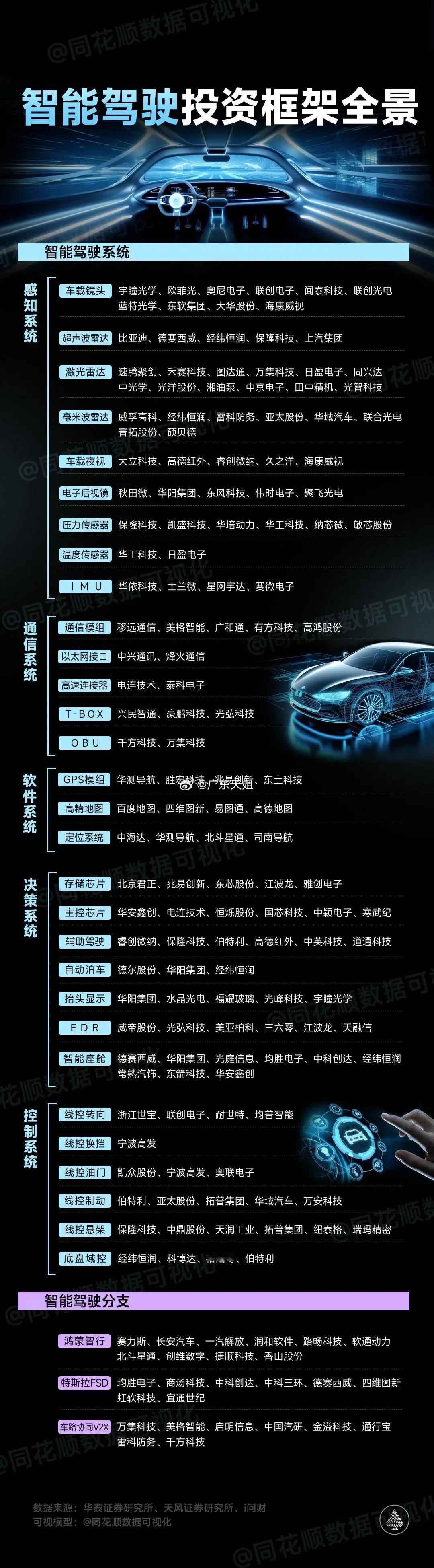 四部委联合破局汽车智造,重绘汽车业新质生产力路线图!12月30日,工信部等四部门印发《汽车行业数字化转型实施方案》,加速关键环节人工智能应用拓展。政策核心是将汽车产业作为“国民经济支柱产业”的定位,通过数字化转型推动产业链升级,目标直指培育“新质生产力”。1.东土科技(300353):自主可控工业级操作系统Intewell已通过车规级验证,支持TSN(时间敏感网络)技术,满足汽车产线微秒级控制需求。公司工业边缘控制器已用于广汽产线设备协同,与“平台+节点+产业链”模式高度契合。2.工业富联(601138):全球5G设备代工龙头,为车企提供工业级5G模组及边缘服务器,支持高可靠通信。公司已参与蔚来、比亚迪工厂5G专网部署,直接受益于通信基建扩容。3.瀚川智能(688022):汽车电子装备市占率国内第一,智能换型技术实现1分钟内产线切换,满足柔性生产需求。公司电池模组产线设备数控化率达85%,覆盖宁德时代、大众等客户。4.科大讯飞(002230):车载语音交互系统市占率超60%,星火大模型上车实现智能座舱多模态交互。公司已发布汽车垂域模型,应用于奇瑞、广汽研发设计环节。5.中科创达(300496):智能座舱平台“Kanzi”获奥迪、理想采用,支持3D HMI开发效率提升50%。公司工具链用于北汽新能源虚拟测试。6.德赛西威(002920):L2+级自动驾驶域控制器市占率超30%,IPU04平台支持英伟达Orin芯片。公司产线AGV调度系统已用于自有工厂。7.埃斯顿(002747):焊接机器人精度达±0.05mm,汽车焊装线市占率本土品牌第一,为一汽、特斯拉提供机器人集成方案。8.华工科技(000988):激光切割装备支持超高强钢加工,打破德系垄断,公司智能传感器用于零部件产线状态监控。9.瑞松科技(688090):白车身焊装线自动化率可达98%,技术对标库卡,为广汽埃安打造AI视觉质检产线。10.用友网络(600588):PLM系统(产品生命周期管理)覆盖整车研发数据流,用于比亚迪供应链协同。公司PLM市占率约15%,替代西门子、达索空间大。11.宝信软件(600845):xIn3Plat平台支持汽车行业标识解析二级节点建设,承接上汽集团工业互联网平台。12.中望软件(688083):三维CAD适配国内车企研发需求,兼容CATIA格式,公司CAX工具进入奇瑞、吉利供应链。13.光环新网(300383):京津冀地区IDC资源龙头,机柜数量超5万架,为车企提供高算力数据中心及混合云服务,满足智能网联车数据存储与处理需求。与北汽新能源共建车联网数据中心,支撑研发仿真及车路协同数据平台。14.移为通信(300590):车载物联网终端全球市占率12%,4G/5G通信模块支持车辆实时数据回传,定位精度达厘米级。终端设备用于东风商用车队管理,实现能耗与故障数据云端分析。15.四维图新(002405):高精地图覆盖全国高速及城市道路,融合AI算法实现动态交通预测,精度达98%。公司“智驾云”平台为小鹏、蔚来提供仿真测试环境,缩短研发周期30%。16.克来机电(603960):汽车电子自动化产线核心供应商,柔性装配技术适配新能源车电驱系统多型号共线生产。事件关联性:政策要求“关键工序数控化率超70%”(总体目标),公司为博世、联电提供电控单元智能产线,数控化率超85%。17.能科科技(603859):PLM(产品生命周期管理)实施能力国内前三,自研数字孪生平台支持整车虚拟调试。承接一汽红旗PLM系统升级,替代西门子。18.广和通(300638):车载通信模组全球市占率18%,5G+C-V2X模组支持毫秒级时延,通过车规级认证。模组用于长城汽车5G工厂AGV调度系统,实现产线设备无线互联。19.浪潮信息(000977):边缘服务器支持车载ECU仿真,算力密度行业领先,联合比亚迪建设仿真云平台。20.启明星辰(002439):车联网安全防护平台覆盖车载网关、T-Box,为上汽提供数据合规方案。