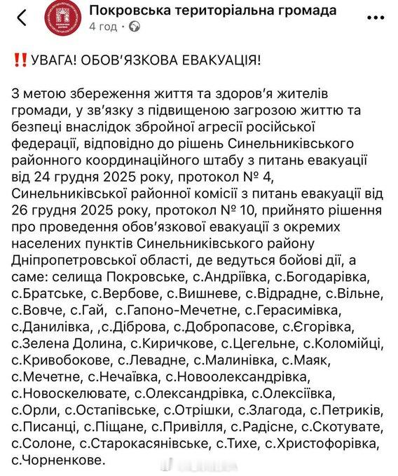 俄乌冲突 乌克兰宣布紧急撤离第聂伯罗彼得罗夫斯克地区另外 40 个人口聚居区。“居民撤离工作将在 30 天内进行。”切尔尼戈夫州地区14 个定居点的居民实施强制撤离。隶属于谢梅尼夫斯卡、斯诺夫斯卡、戈罗季扬斯卡和诺夫哥罗德 - 谢韦尔斯卡社区的多个定居点的居民必须紧急离开其居住地。猜到俄军将全面进攻了?普京官邸遭乌方袭击
