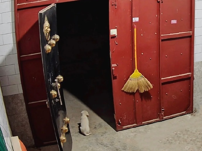 两个月大的小狗一本正经的看门了