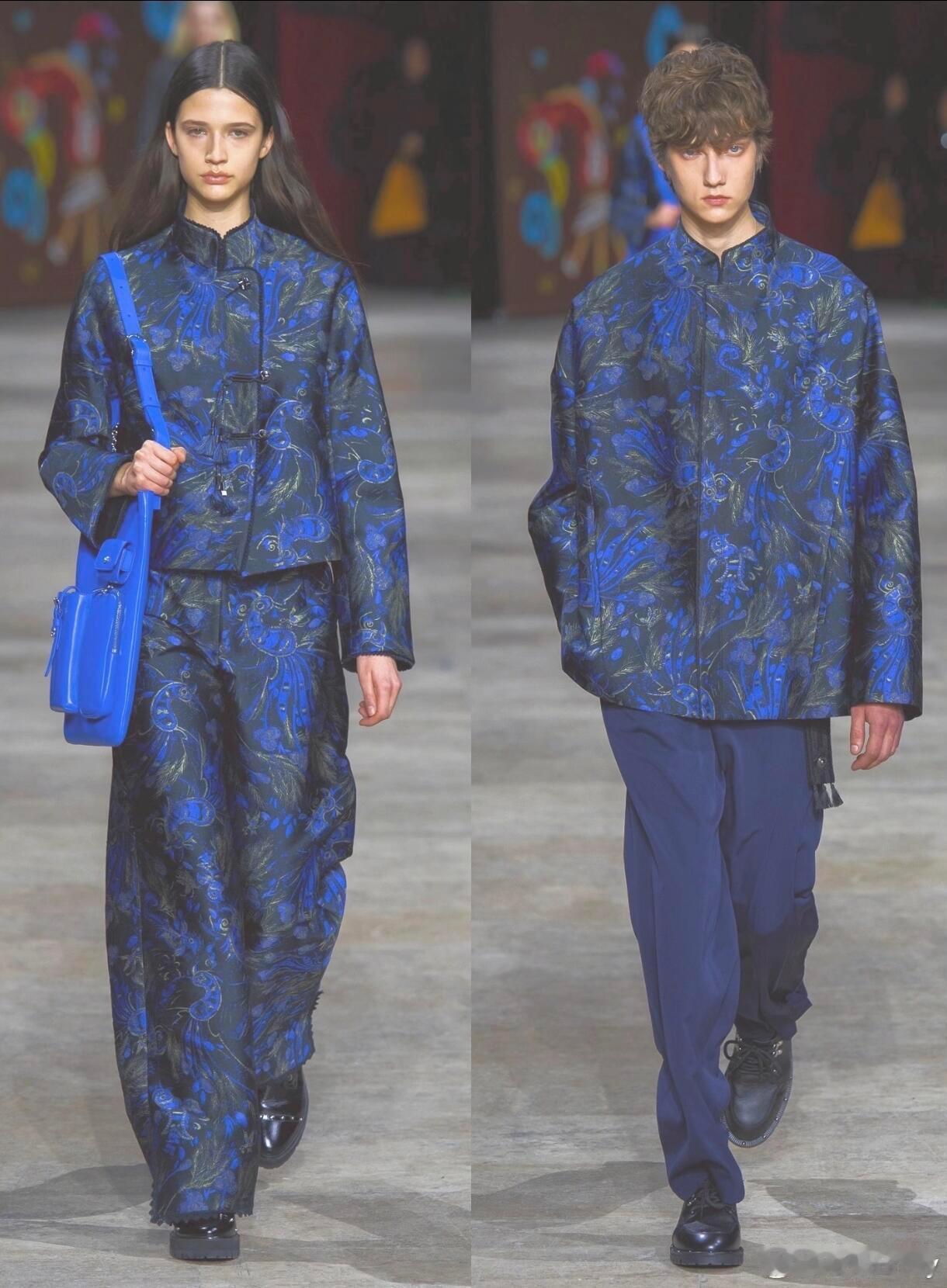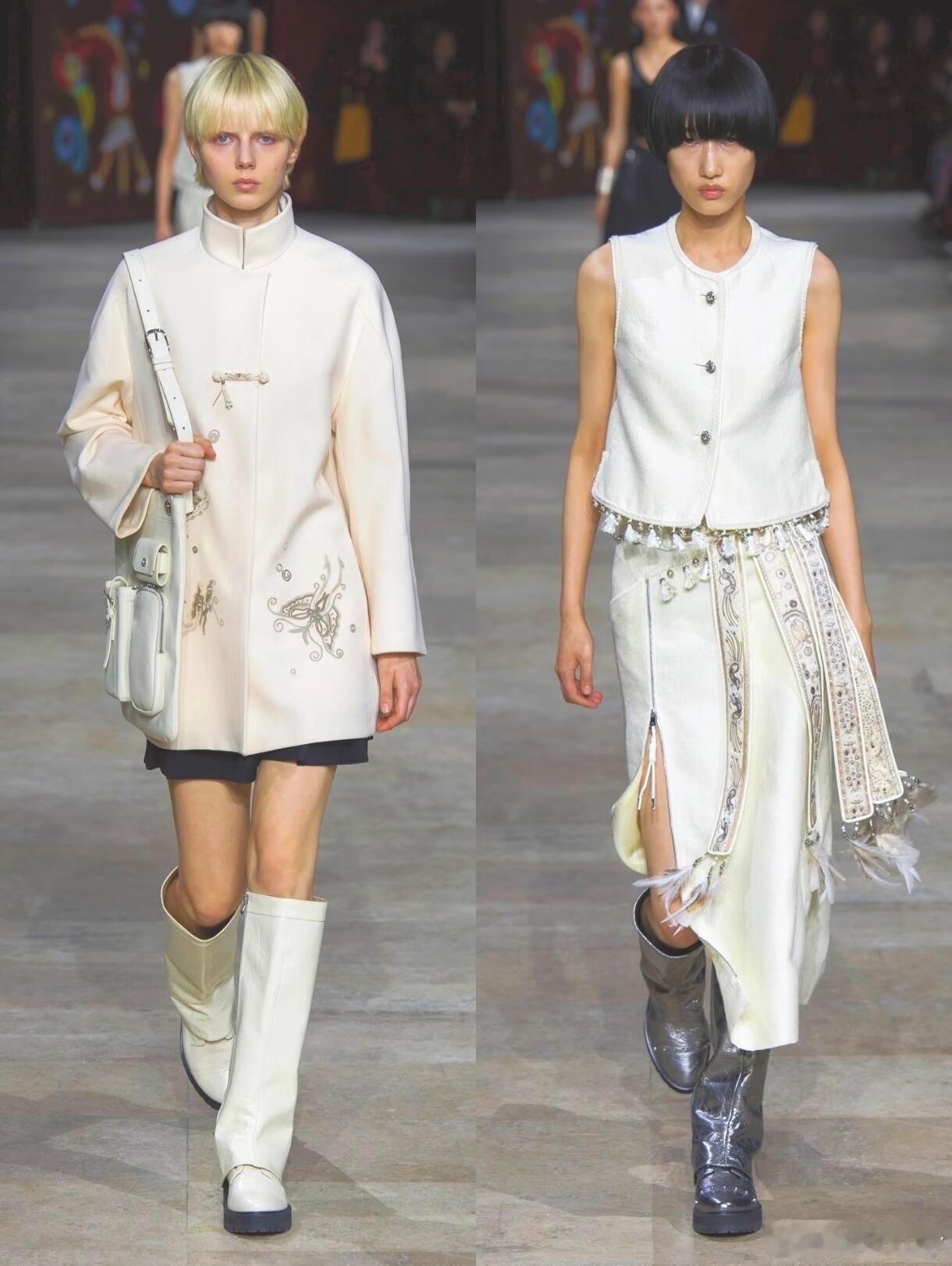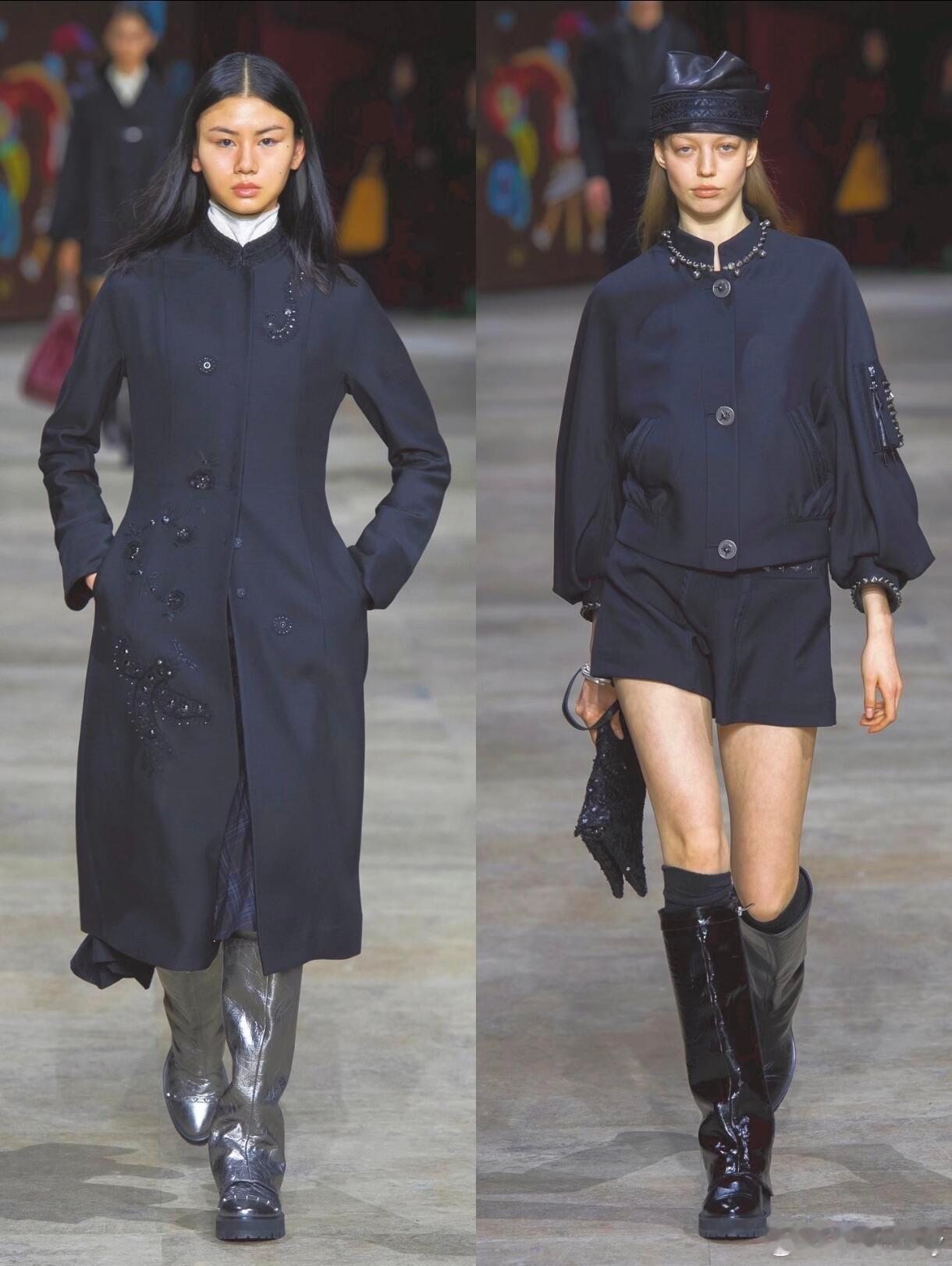 风格大赏中式机能风 当东方美学挣脱传统桎梏,夏姿·陈2025秋冬秀场用一场“中式机能风”革命,重新定义国风时尚的打开方式。立领盘扣、龙纹刺绣这些经典中式符号,不再是博物馆里的静态陈列,而是与oversize廓形、街头长靴、工装包完成丝滑融合,让风骨与潮流碰撞出震撼人心的审美张力。本季秀场堪称色彩与工艺的双重盛宴。奶油白系列以利落线条为基底,暗藏的盘扣细节如点睛之笔,将中式雅致藏于极简轮廓中,温柔却不失力量;墨黑与酒红的大胆撞色极具视觉冲击,刺绣腰封精准勾勒腰线,在酷感中注入东方韵味,刚柔并济;宝蓝色提花套装则将东方纹样的华丽感推向极致,繁复图腾与挺括版型形成奇妙平衡,男女同款的设计更添中性帅气,打破性别边界。最令人惊艳的莫过于传统元素的摩登重构:手绘感龙纹挣脱刻板印象,以灵动笔触铺满衣身,搭配漆皮长靴,古典意蕴与叛逆精神碰撞出独特火花;非遗刺绣工艺与现代科技面料交织,针脚间的东方肌理透过oversize剪裁得以放大,既有手工温度又具街头质感。工装包上的玉石搭扣、长靴侧边的盘扣装饰,将机能实用性与中式美学细节完美融合,让国风穿搭真正落地日常。夏姿·陈用46年中西融合的匠心,证明中式美学从不是硬凹的符号堆砌,而是可穿可感的摩登腔调。这场秀不仅是一场风格大赏,更是东方文化自信的鲜活表达——当立领遇见街头,当刺绣碰撞机能,传统与现代不再对立,而是共生出更具生命力的时尚语言,让中式机能风成为2025秋冬最值得期待的潮流风向标。
