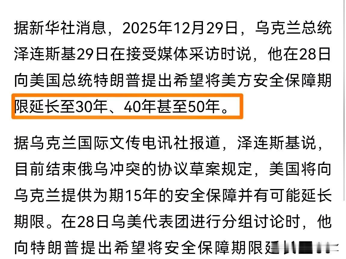 泽连斯基太天真!希望美国给乌克兰50年的安全保障。 说两句,乌克兰在美国眼里就是个棋子,棋子是冲锋陷阵效忠主人,说白了就是保护棋手利益必要时献身。 美国、欧洲、俄罗斯、乌克兰四方博弈,乌克兰在美国心目中就是工具,需要时给你抢炮上战场当炮灰,谈判时乌克兰就是一盘美味佳肴。 想一想,美国人为你乌克兰人去打仗,这不是天大的谎话,泽连斯基把主人与奴仆关系都搞不清。 泽连斯基想法是好的,但是,现实太残酷啊!从古到今美西方国家的丛林法则始终没有改变。 乌克兰未来还是要靠自己,学会小国在大国博弈中的生存法则,千万不要选边站队。 乌克兰走到这一步,泽连斯基应该好好反思一下,自己错在哪里?答案:就是太相信美西方国家。 泽连斯基希望美国50年安全保障 国际观察今日热点 劲爆消息!