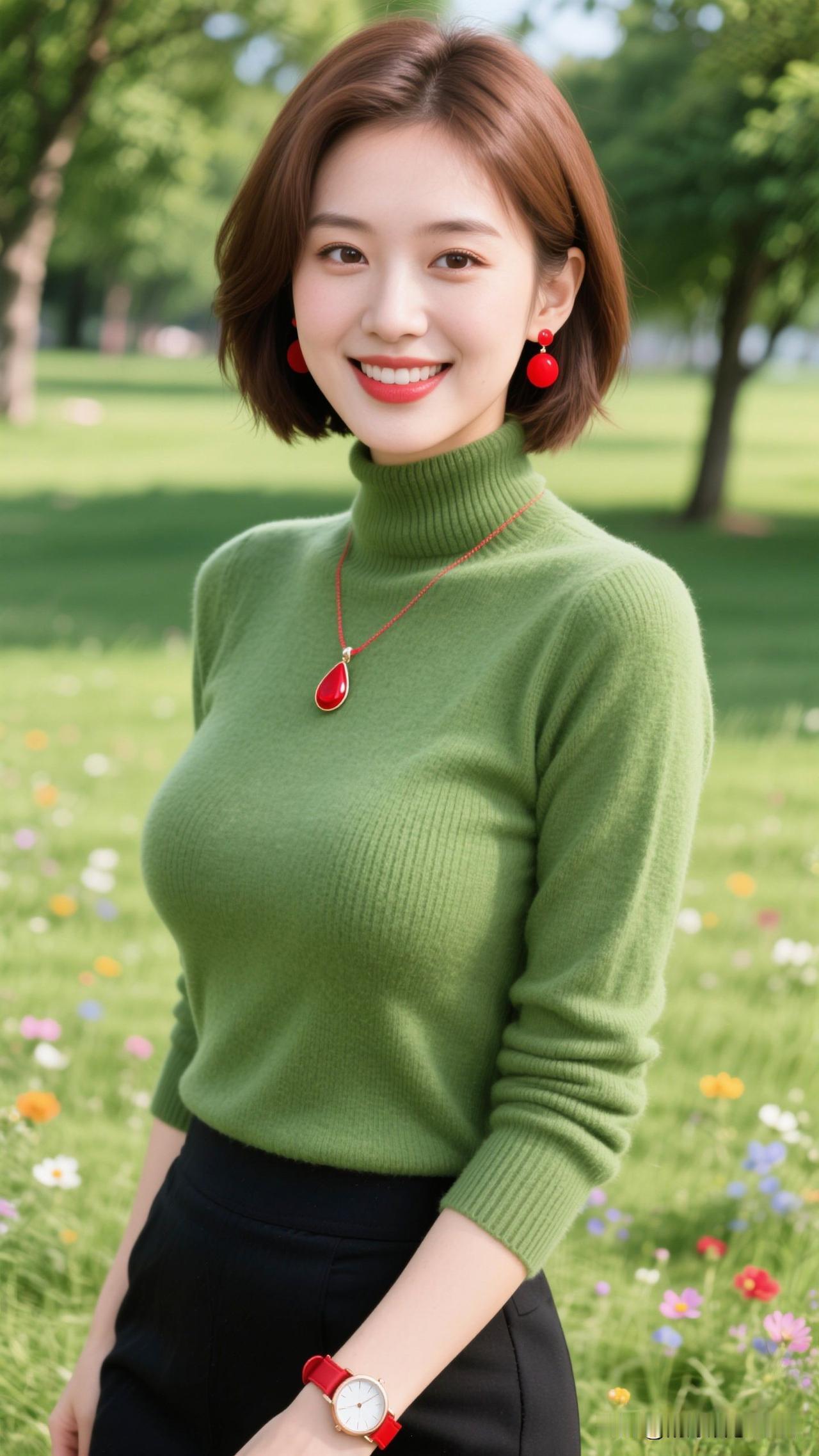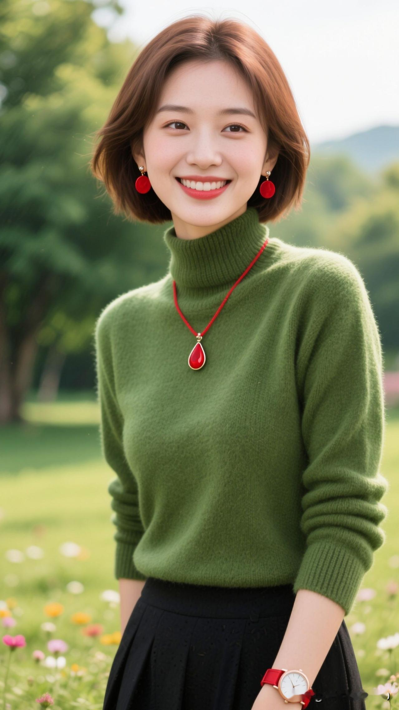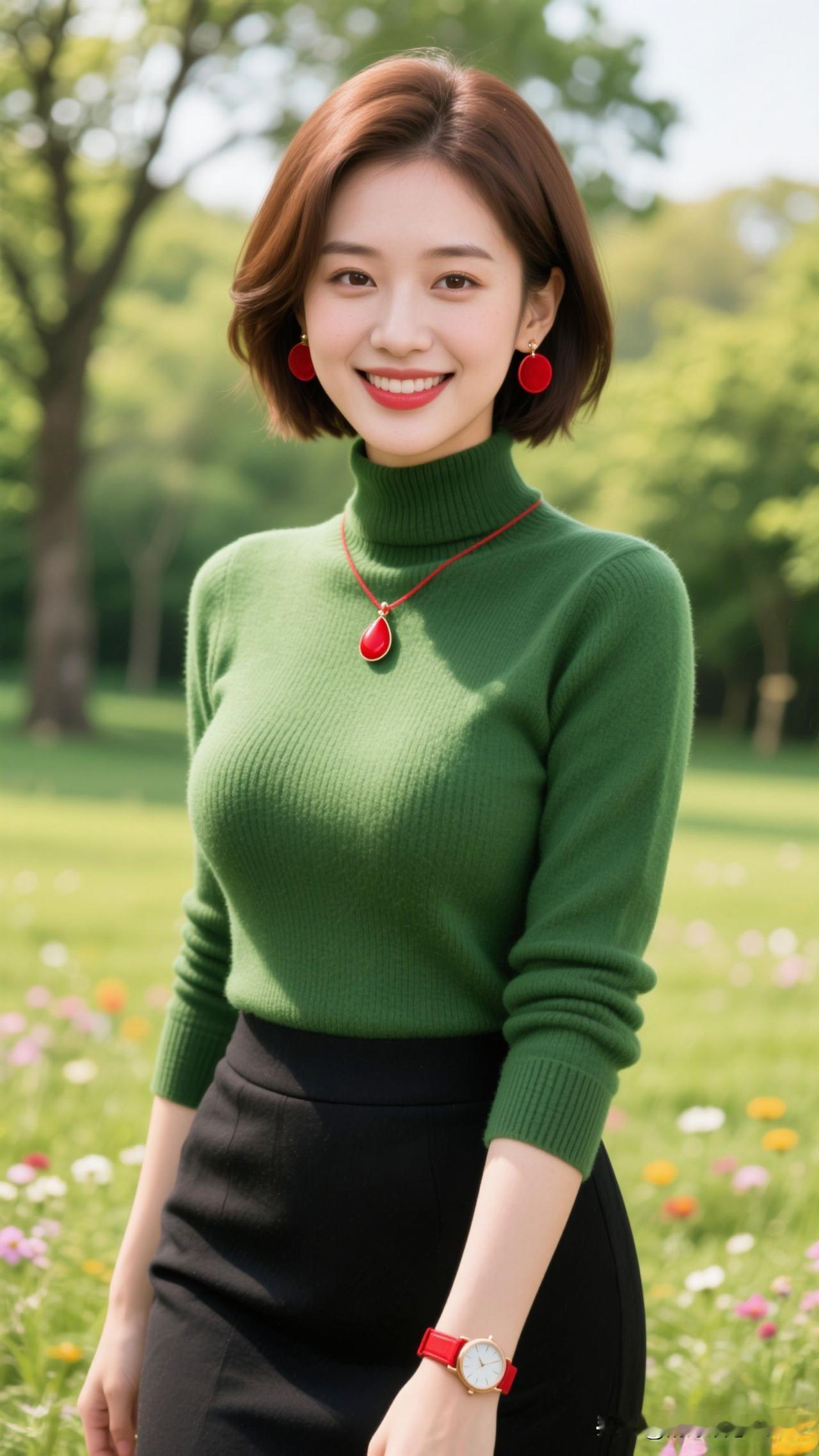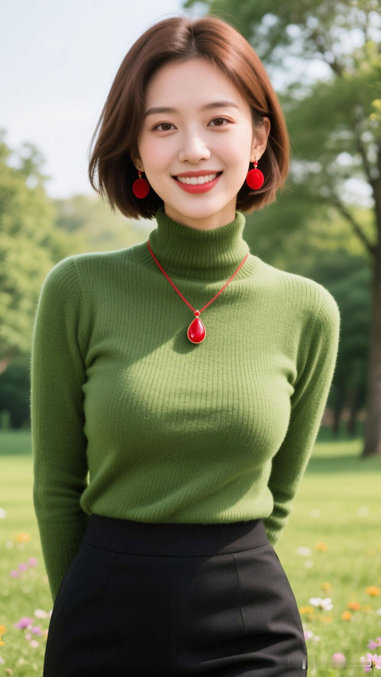 🌿 草色毛衣盛着春野的风,红饰是揉碎的花火,一笑,整个花海都跟着鲜活起来。江南春国画 新中式淡雅国画 碧绡绘春图 水墨毛衣 碎花水墨画 吴中秋国画 水墨画针织衫