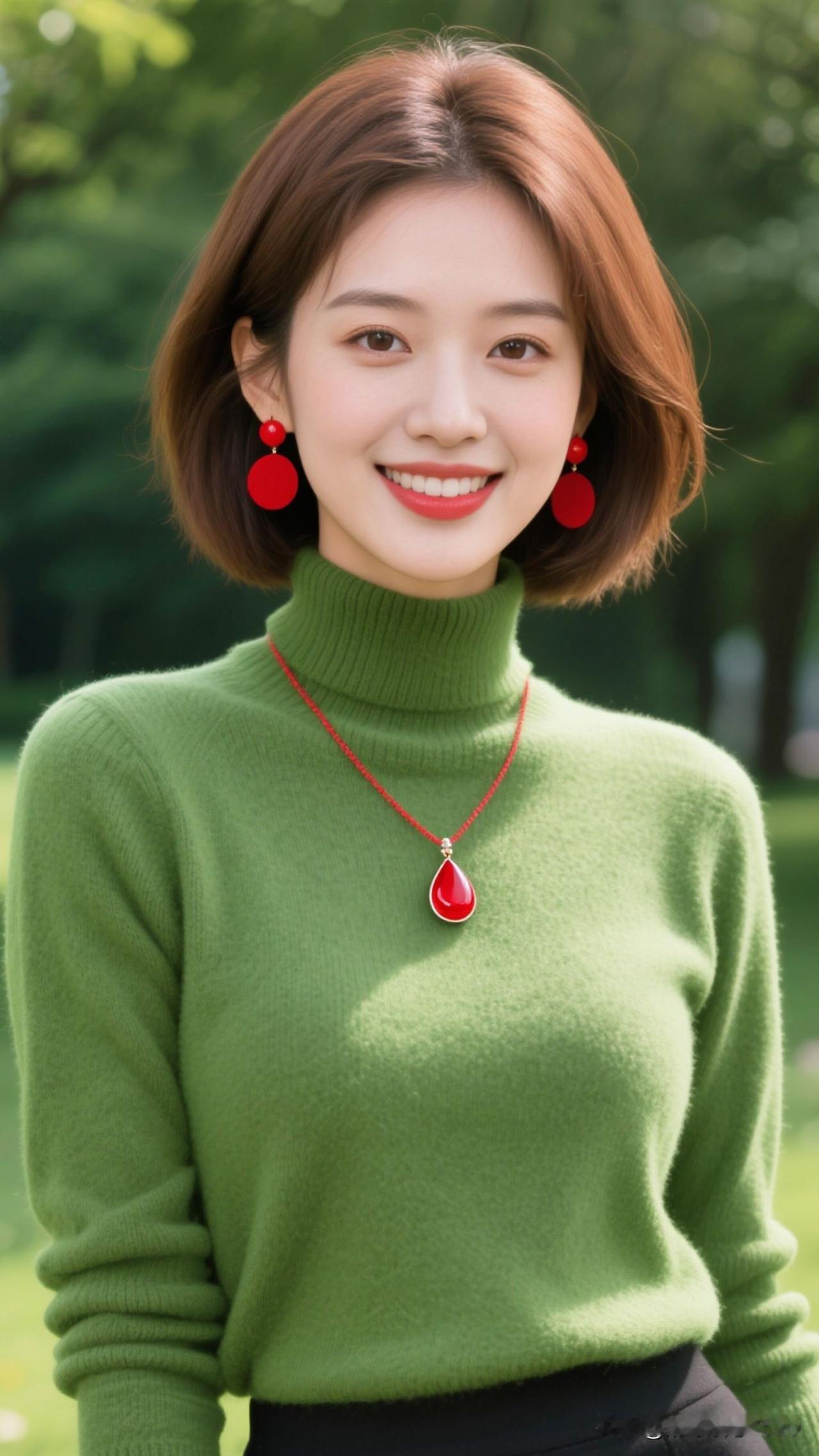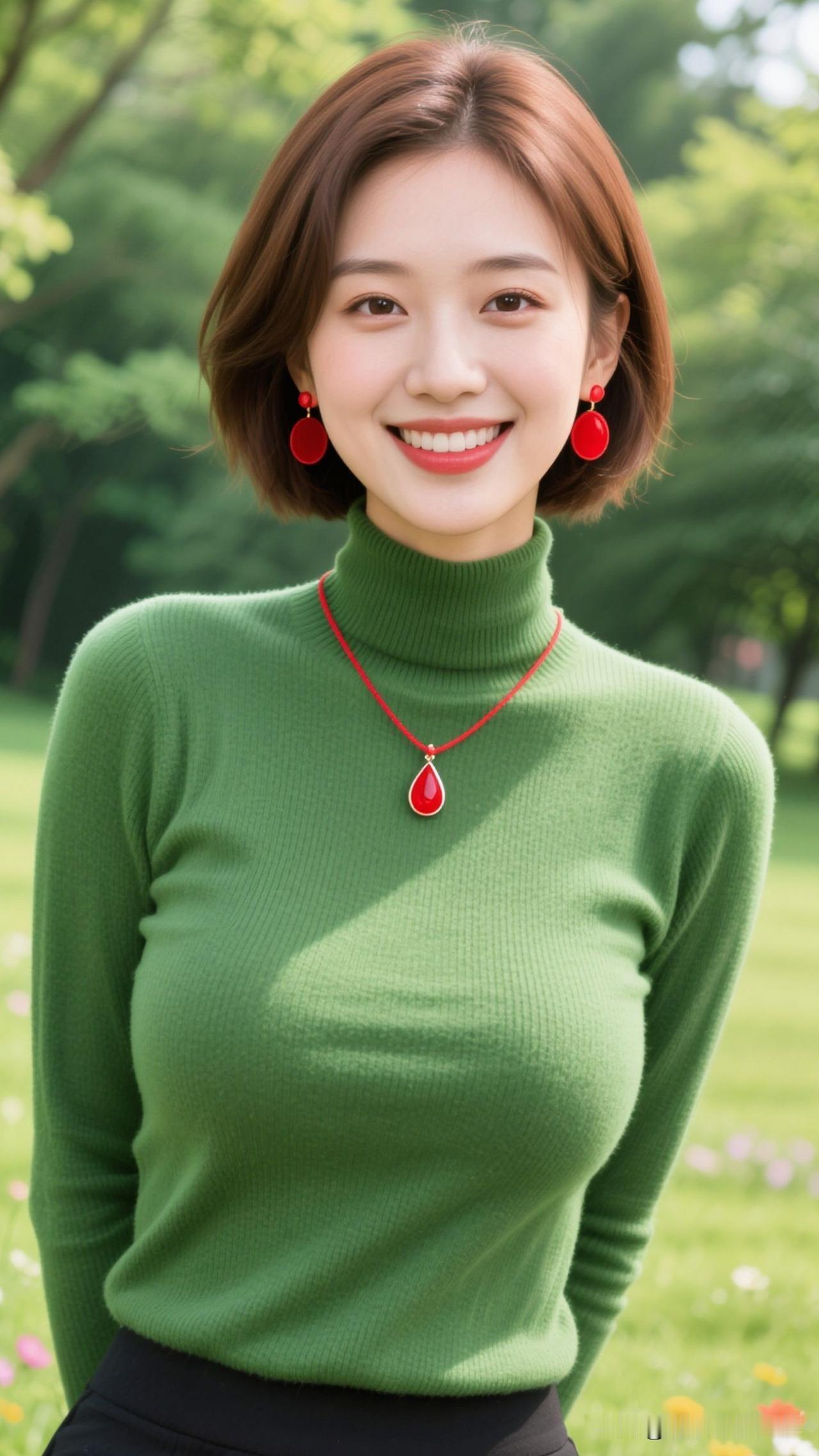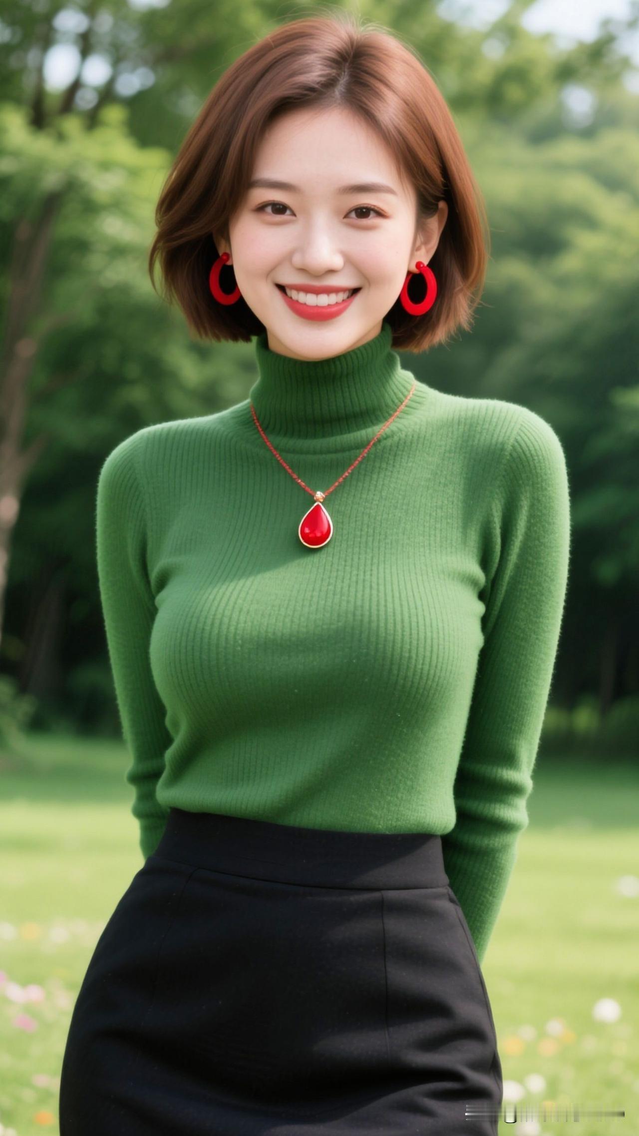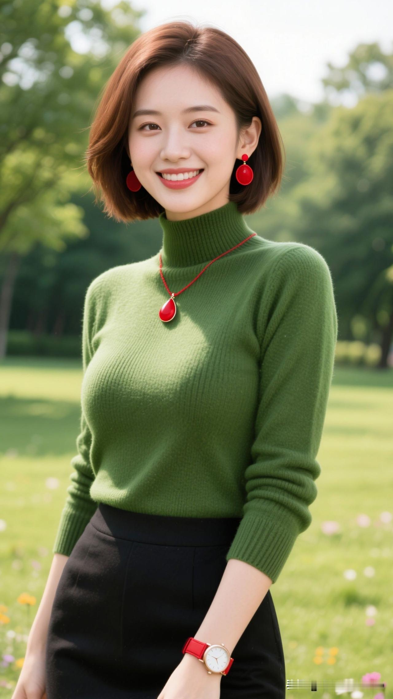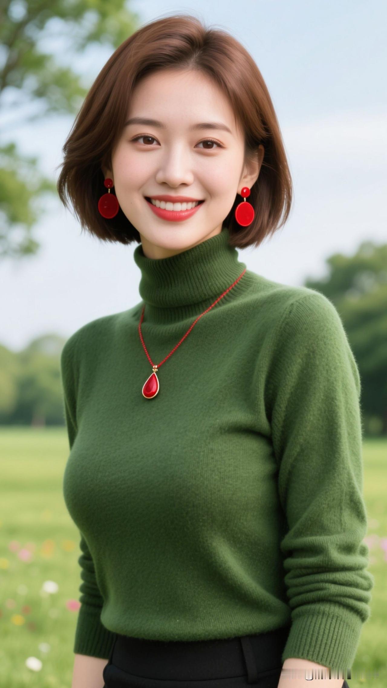 🌿 草色毛衣盛着春野的风,红饰是揉碎的花火,一笑,整个花海都跟着鲜活起来。江南春国画 新中式淡雅国画 碧绡绘春图 水墨毛衣 碎花水墨画 吴中秋国画 水墨画针织衫
