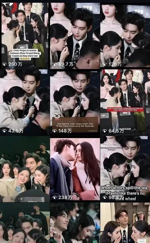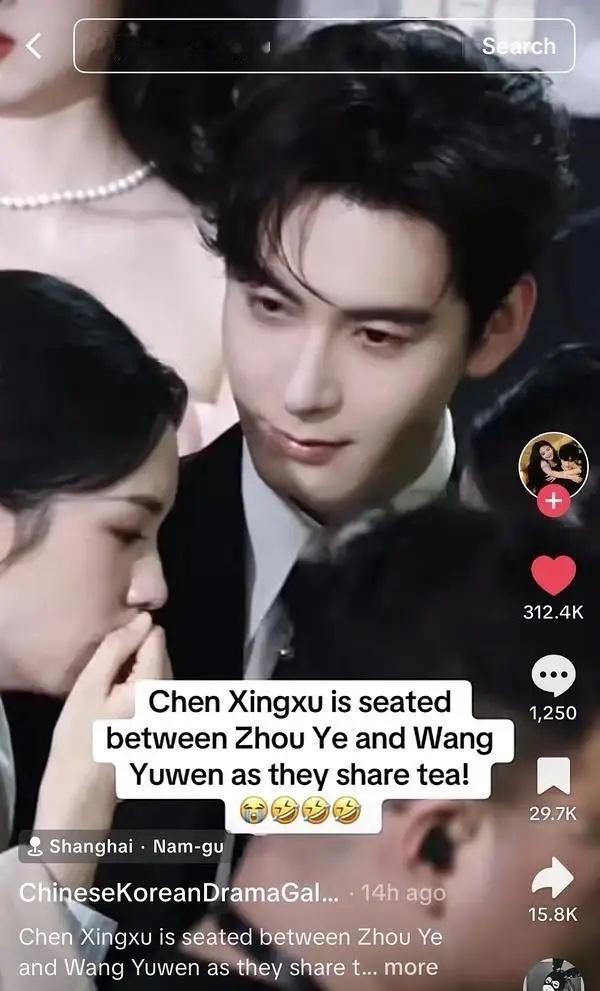 陈星旭,他怎么能那么温柔,那么有耐心啊 看到左边的周也和右边的王玉雯趴在他的胸口上聊八卦,他一点也没有不耐心,也没有很冷漠,而是一副饶有兴趣的样子。 当然,夹在中间的他,也试着给两位美女腾个位置,让她们可以更好地聊天,可是被美女拒绝了。 要是其他的直男,夹在美女中间,又没有参与她们的话题,肯定会表现出很冷漠的样子,可是,他没有。 他的表情耐人寻味,是温柔,是绅士风范。 也难怪这段小视频会在韩国爆火,因为陈星旭实在是太温柔,太迷人了。 我昨晚上还刷到他跳喵喵的手势舞,属实被他帅到了,想到一句话:陌上人如玉,公子是世无双,形容他再贴切不过了。 咱就说说,这样的男生,谁不迷糊 陈星旭 王玉雯红毯生图