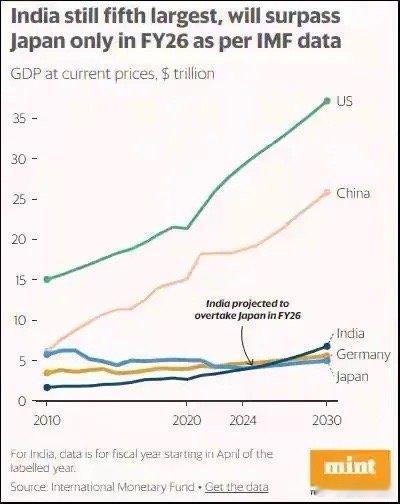 印度刚刚宣称GDP超过日本,跃居世界第四,仅次于美国、中国和德国。并且目标是三年