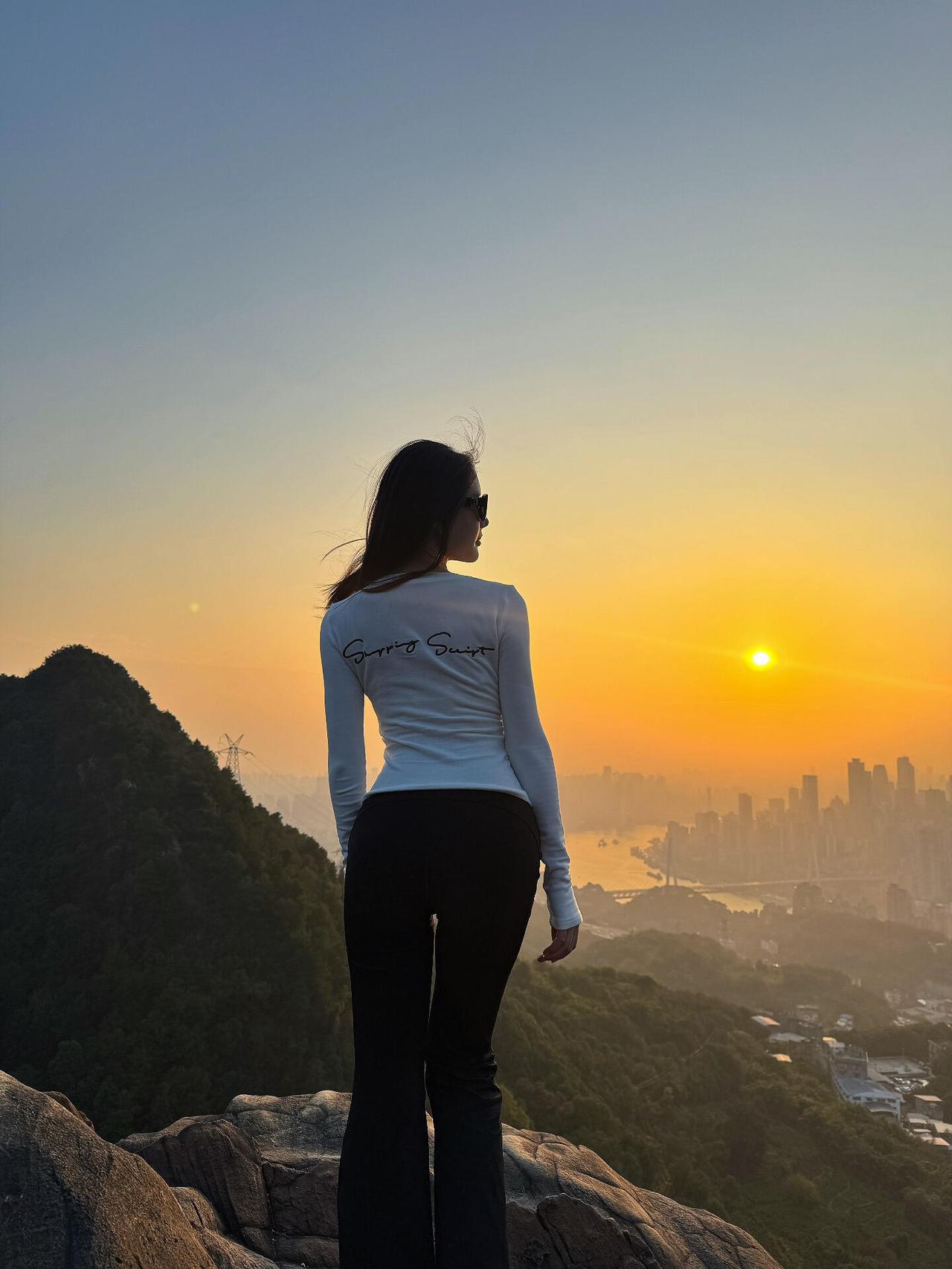 山巅的落日与脚步 风把林间的枯叶卷成细碎的浪, 我踩着凹凸的石阶向上, 鞋跟叩击泥土的声响, 是写给山野的短诗,一行,又一行。 枝桠横斜着拦住天光, 漏下的金芒在肩头摇晃, 像小时候攥着的糖纸, 晃啊晃,晃开了城市里皱起的慌张。 灰色的衣料蹭过带露的草叶, 沾了一身清冽的香, 回头时,身后的路已被林木掩藏, 而前方,是更高处的风,在轻轻唱。 终于站到松枝掩映的崖边, 落日把天空熬成熔金的糖浆, 城市在眼底缩成模糊的轮廓, 江水流过,像一条闪着光的缎带在晃。 我靠着松树站定, 看橘色的光漫过发梢,漫过肩膀, 墨镜后的视线里, 远山叠着远山,绿浪推着绿浪, 所有的烦恼都被风揉碎, 散进这无边的苍茫。 又一步,踏在嶙峋的岩石上, 白衫的背影融进落日的霞光, 指尖好像能触到天边的云, 柔软得像未拆封的梦想。 转身时,夕阳在墨镜上碎成星子, 抬手把帽子抛向风的方向, 那一刻,我听见自己的心跳, 和山风撞个满怀,热烈又坦荡。 下山的路藏在浓绿里, 脚步轻了,像踩着云朵的边缘, 落叶在脚下发出细碎的声响, 是山野送别的浅唱。 回头望,山巅的落日正慢慢沉落, 把最后一抹温柔,留在我走过的山岗。 原来我们总在奔赴远方, 却忘了山野的风,能吹软所有坚硬的墙; 原来最动人的美好, 从来都在抬头时的霞光,和脚下的路,一寸寸生长。 我把山野的风揣进衣兜, 把落日的温度刻进心房, 当城市的霓虹再次亮起时, 想起这一日的攀登与凝望, 就会有一束光,从心底升起, 像山巅的落日,永远温暖,永远明亮。落叶之诗