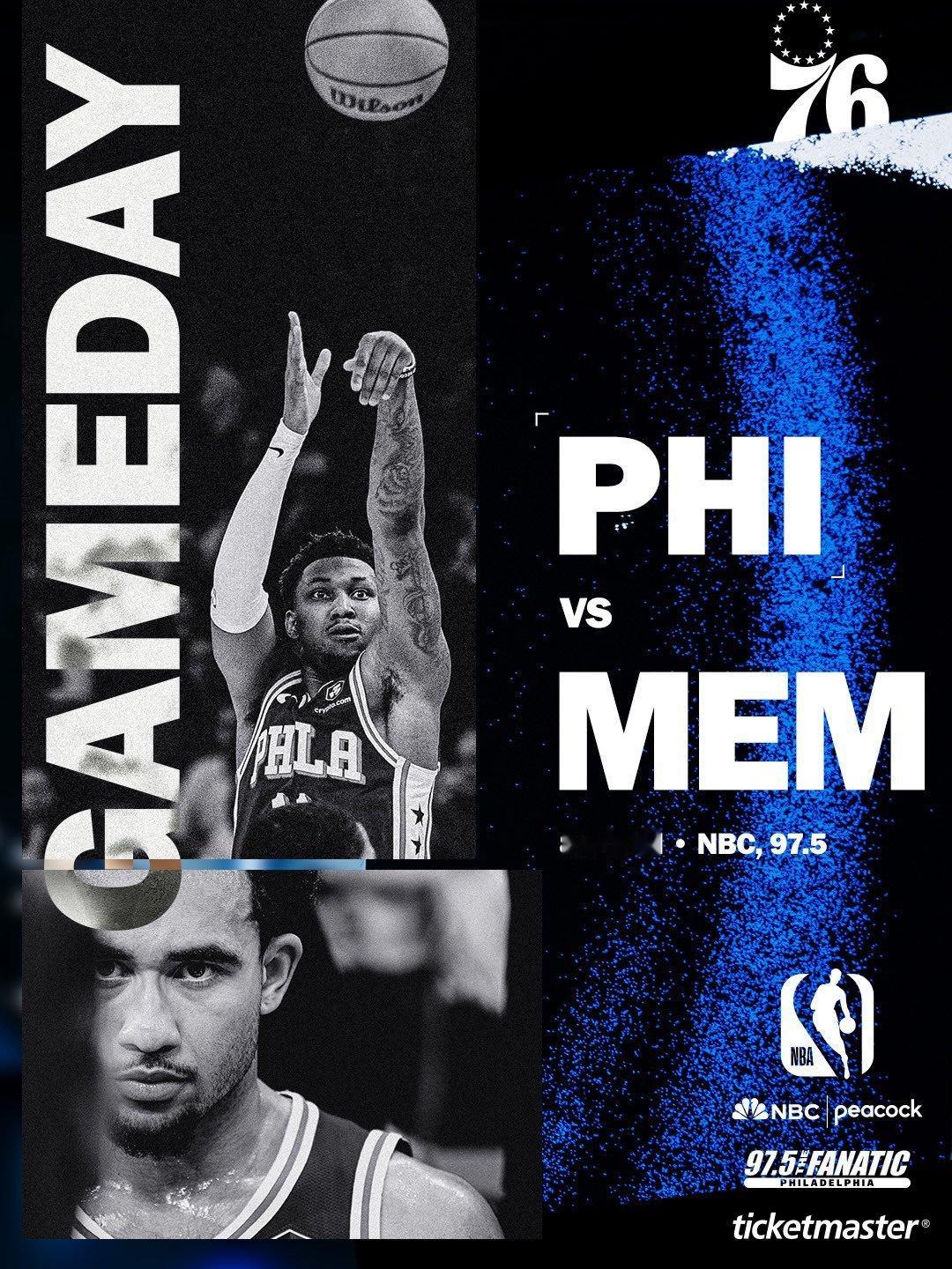 常规赛第31场:76人vs灰熊首发阵容名单:马克西、埃奇库姆、乔治巴洛、恩比德费