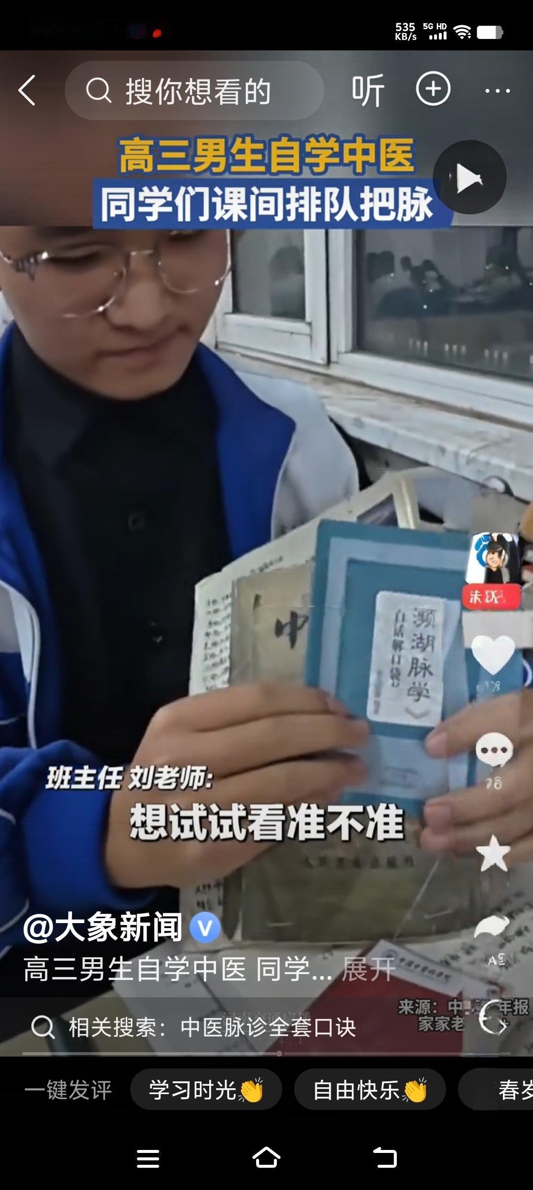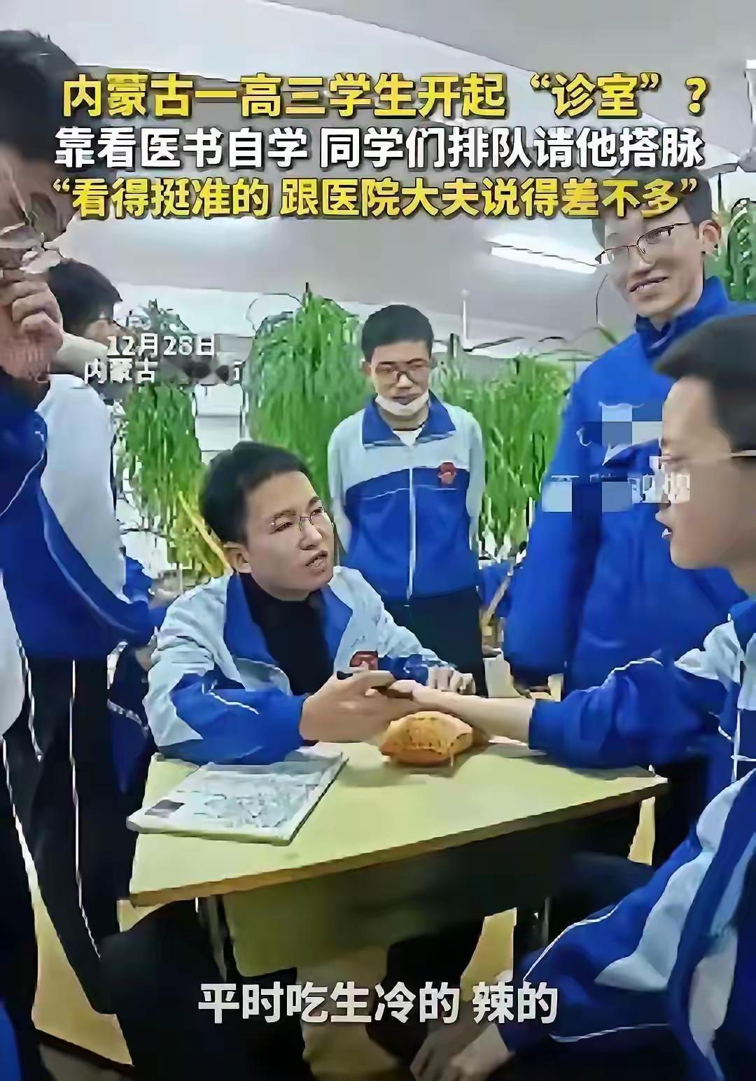 内蒙古高三男咋这么厉害?2年深读5本中医书! 那帮五谷冈山男生经常和爷爷跑中医馆, 对中医产生了浓厚的兴趣,他在学习之余啃下五本中医书, 现在能够给同学们把脉, 他把脉之后,有的学生说跟在中医院医生看的差不多, 可见这位男生对中医有着独特的偏爱。 不过这位高中生一定要不能因为研究中医耽误了主课的学习,因为为了实现你的梦想,一定要走正规的升学之路报考中医学院,这样才能够让你更好的研究出我国的中医药学, 为你有更好的未来奠定基础, 这张入场券一定要拿到! 因为已经有过前车之鉴,有一个有着几十年中医经验的老中医,却因为没有拿到中医资质而开不了中医馆。 现在男生放下自己的课余爱好,还是要埋头苦学,争取高考顺利考上自己心仪的专业!