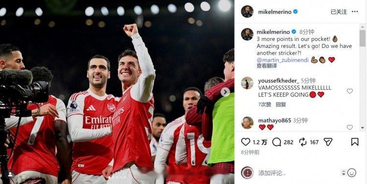 我怎么看到拉姆塞的影子!!!梅里诺更新社媒庆祝胜利:“我们又收获3分!很棒的结果,继续加油!”“我们又多了一个前锋?祖比门迪。” 阿森纳4比1阿斯顿维拉 阿森纳终结维拉11连胜 阿森纳著名教授