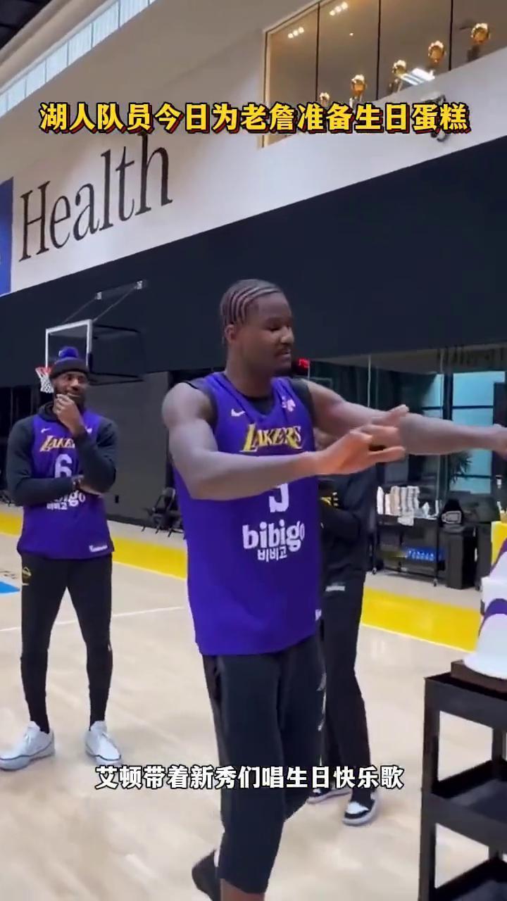 湖人队员今日为老詹准备生日蛋糕,艾顿带着新秀们唱生日快乐歌。 WE ON CUE。