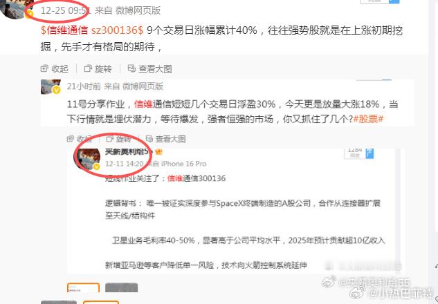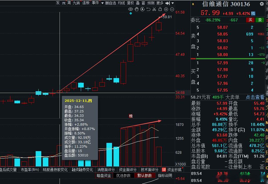 $信维通信 sz300136$ 太强了,起爆开始连续大涨7天,短幅涨70%,25年圆满收下成绩,昨日分歧又吓退不少筹码。