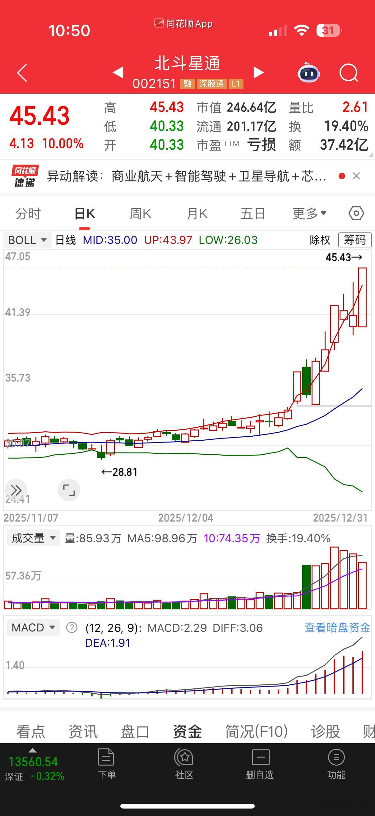$北斗星通 sz002151$ 反包涨停,年尾作业全部拿下,交成绩,成交量堆积,节后看高度了