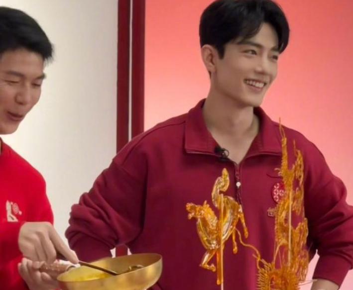2025年12月29日,肖战在李宁新春直播中体验了中国民间传统手工艺糖画。 直播中,肖战一开始自嘲“手抖得不行”,但很快就展现出惊人的学习能力。他手持糖勺,舀起金黄的糖浆,手腕轻转、提顿之间,就勾勒出了寓意“福禄安康”的葫芦轮廓,收尾时还能精准提勺收糖,动作行云流水。在绘制李宁logo时,他更是解锁了糖画高阶技巧——浮雕填充,用工具细致修饰细节,让平面图案呈现出立体质感,连现场非遗老师都忍不住赞叹。此外,他还与非遗师傅合作创作了糖马,亲手填充鬃毛轮廓、雕琢浮雕细节,成品立体又精致。