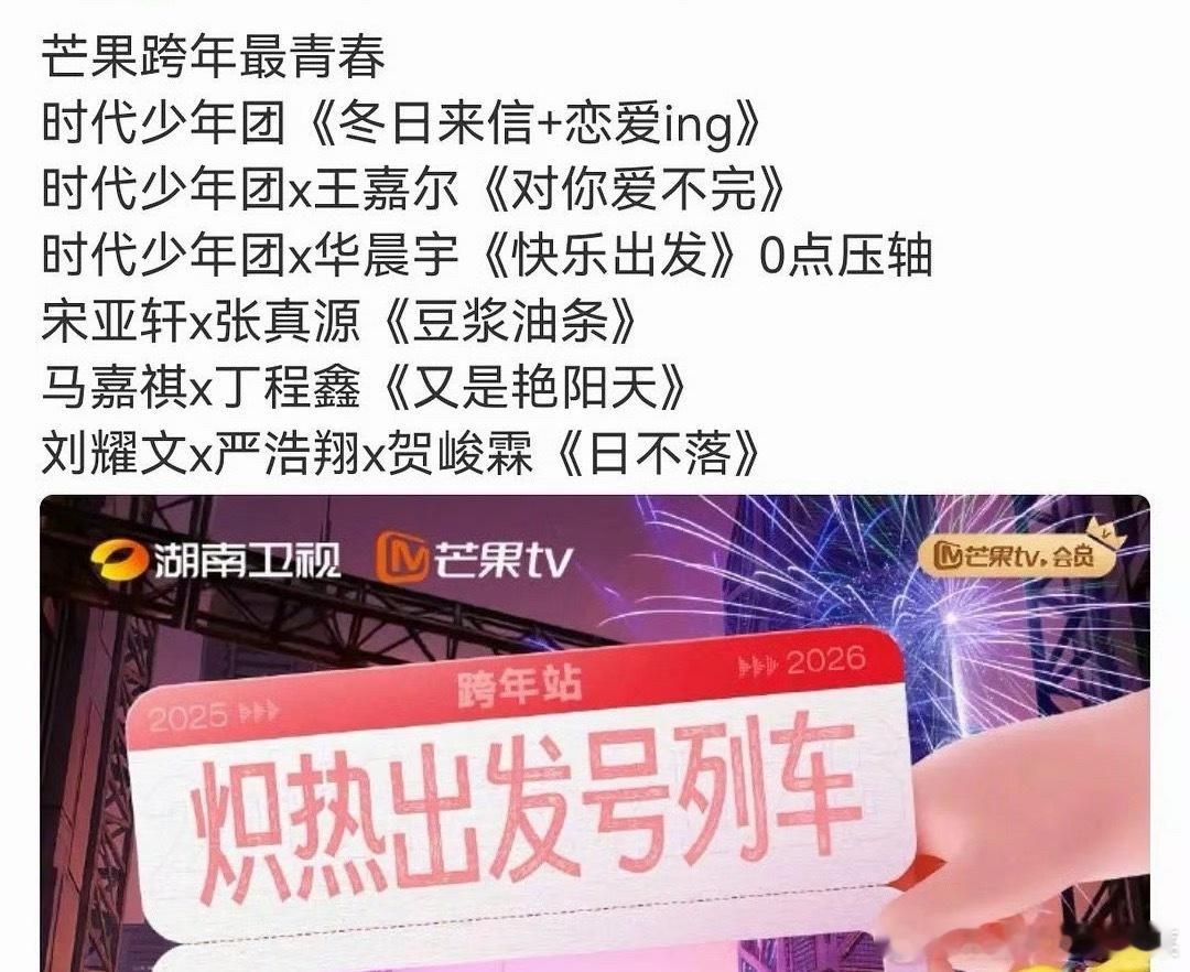 王俊凯在江苏卫视跨年唱两首歌时代少年团湖南卫视跨年唱一堆歌登登在江苏卫视跨年唱两首歌tfing在浙江卫视跨年唱四首歌(有卡拉永远ok 张峻豪在浙江卫视跨年唱两首歌(和张艺凡有一首合唱 时代峰峻唯一异性恋的含金量还在上升 大家不要跑错 跑漏~