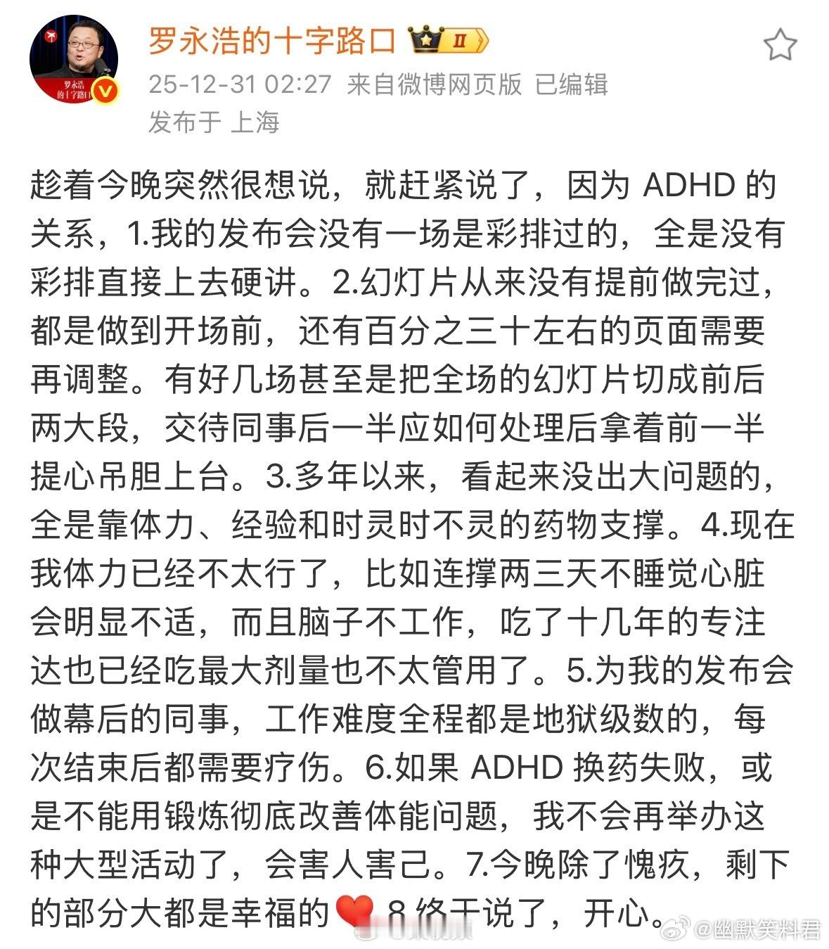 罗永浩这实力太强了,这就是底气足吧。罗永浩自曝ADHD