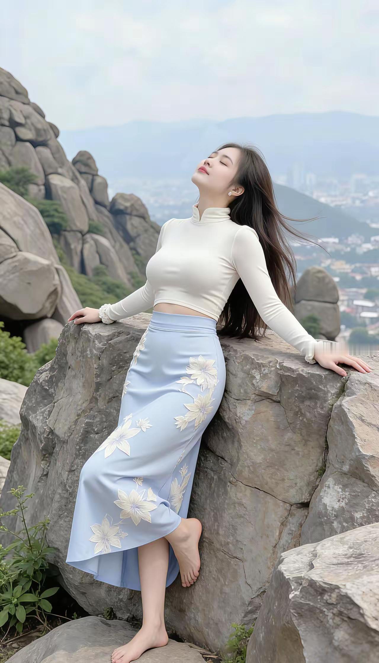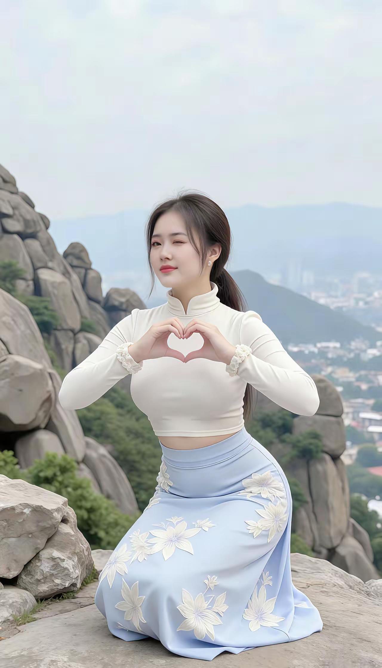 仙气飘飘的汉服少女,山间美景尽收眼底