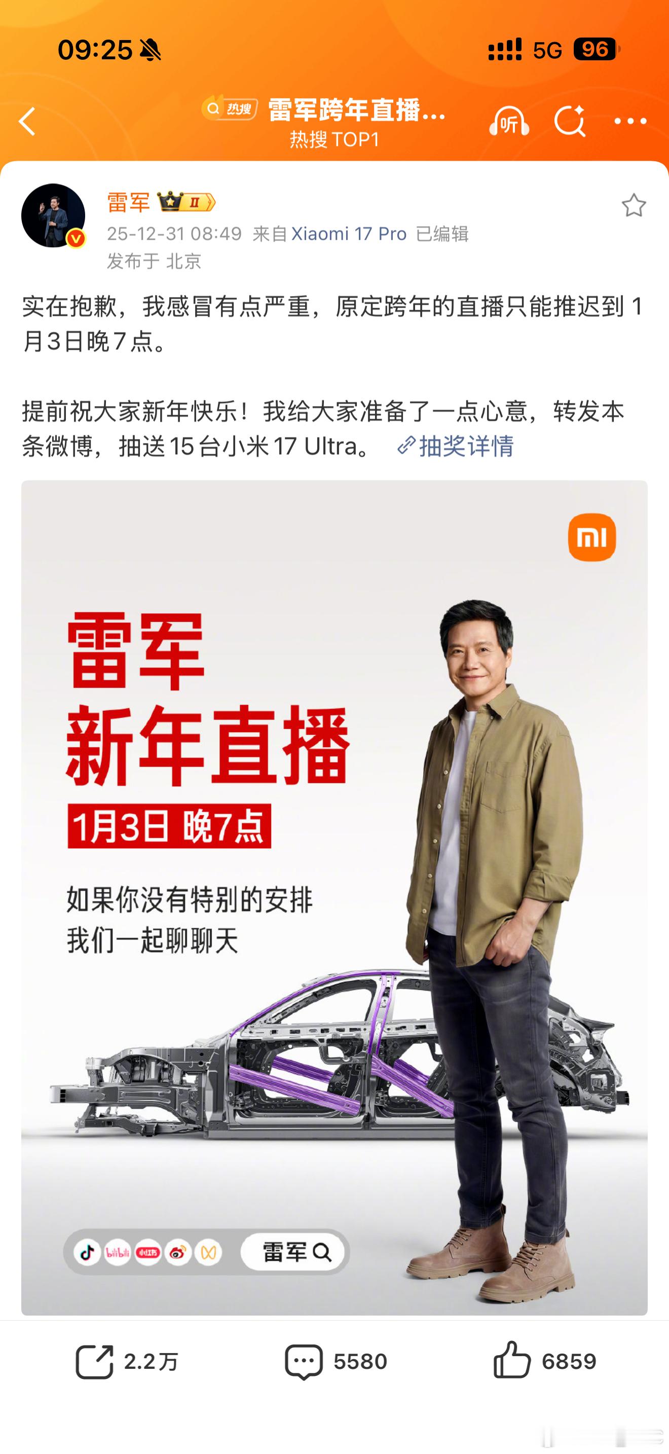 雷总感冒有点严重,跨年直播改新年直播了….这一波甲流真的很猛。上周我刚痊愈,今天还会咳嗽气短喘不上气,这难受程度跟前两年新冠有的一拼。医生说,最近发热的九成都是甲流。大家都要注意身体啊