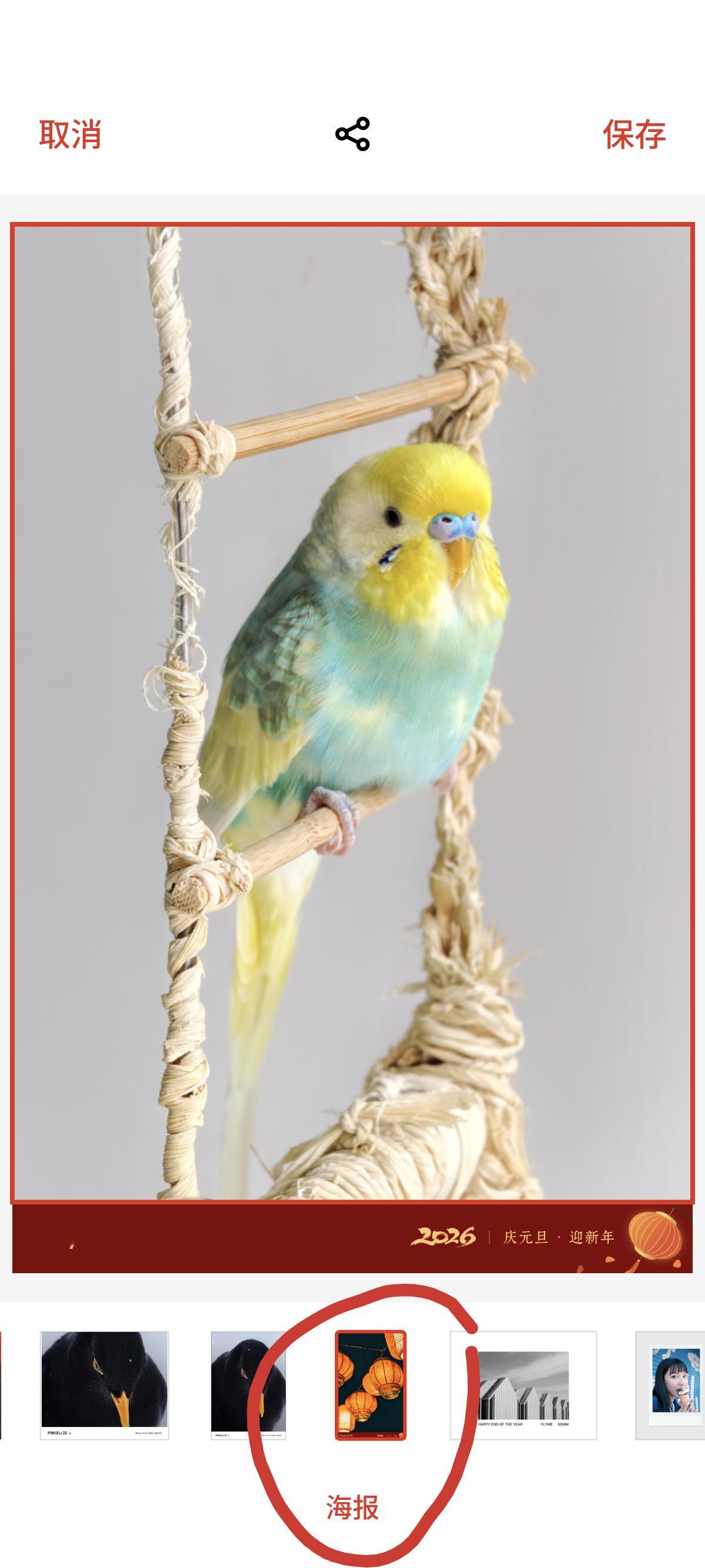 魅族 FlymeAIOS的元旦专属相机水印来了!进入相册-发现-海报,下载后即可使用。魅族鹦鹉小蓝和布丁