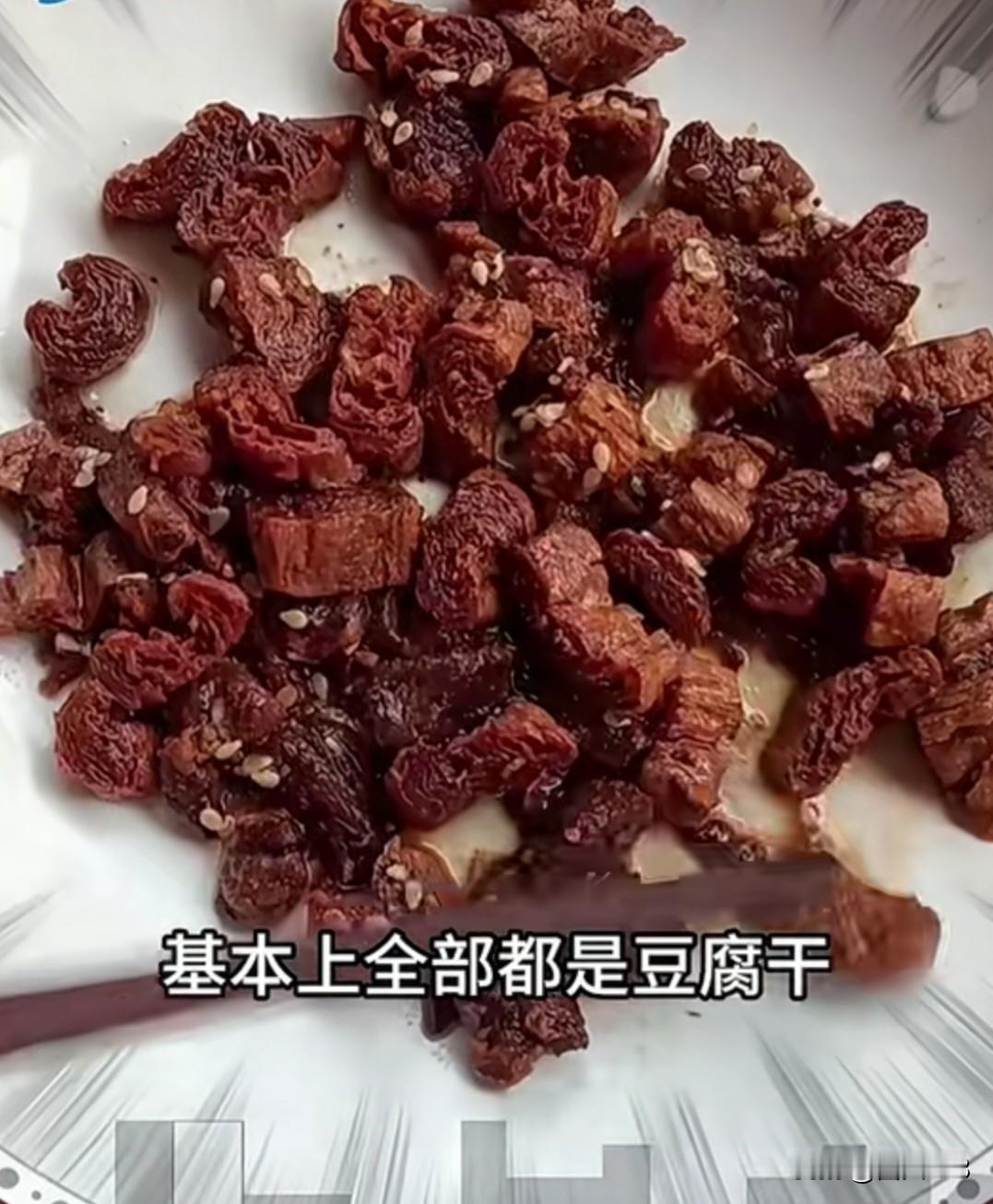 男子吐槽, 75 元一斤的牛肉干秒变豆腐干,真是防不胜防! 现在的消费陷阱真是防不胜防啊! 12月28日,湖南一男子在展会上花75元一斤买了“手撕牛肉干”。他喜欢清淡口味,就把牛肉干放锅里焯水,结果捞出锅一看,“牛肉干”秒变“豆腐干”。 更离谱的是,这“牛肉干”外包装配料表上写的只有牛肉和食用盐,他当时还觉得配料干净,没想到里面基本都是豆制品,牛肉几乎没有。花着牛肉的钱买了豆腐干,这谁能忍?大家消费时可得擦亮眼睛,别像这大哥一样被坑啦!