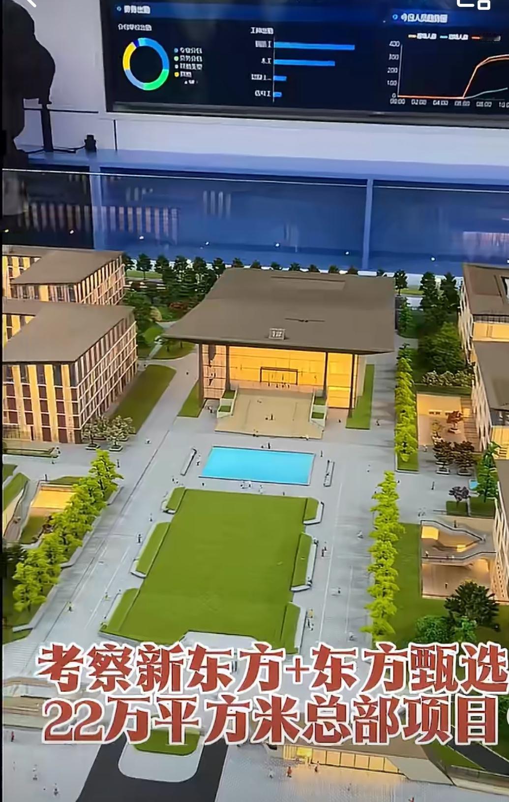 俞敏洪考察新东方+东方甄选22万平方米总部项目 12 月 31 日,新东方创始人俞敏洪发布最新视频,考察新东方+东方甄选22万平方米总部项目,该项目由中建六局承建。 视频中,该项目规划有 8 栋建筑,其中 1 号楼位于整体布局的核心。项目周边山体清晰可见,俞敏洪ip属地显示在北京,但并未透露项目的具体位置。