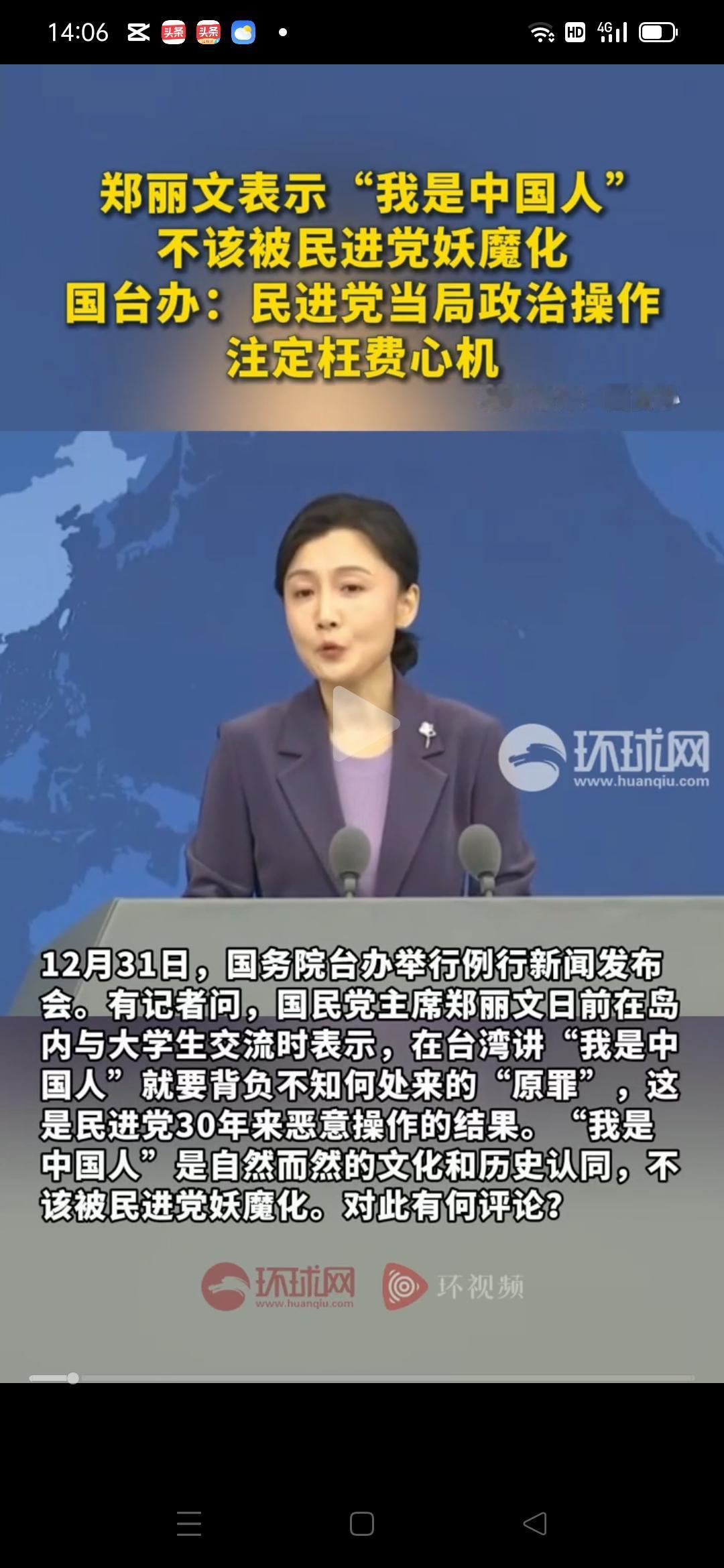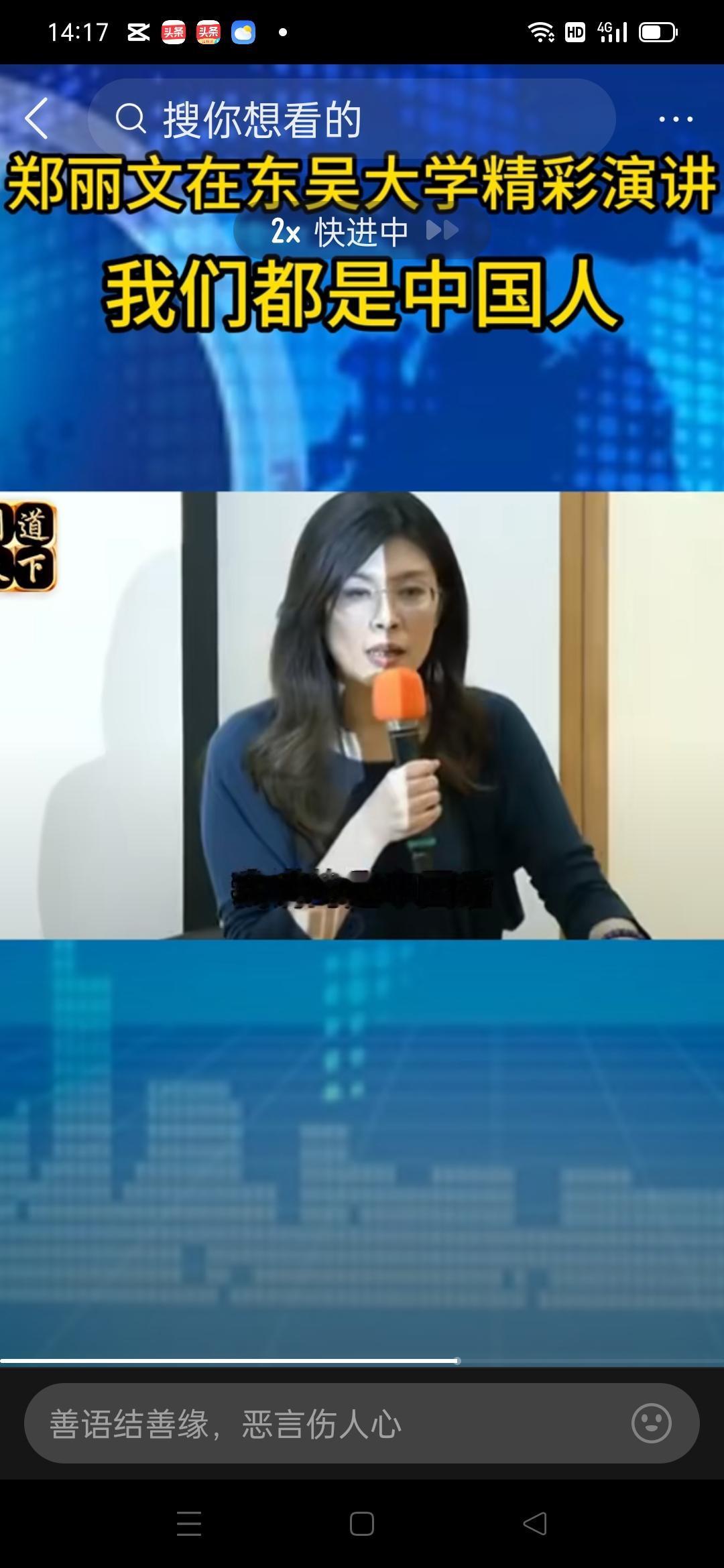 郑丽文在东吴大学演讲,公开说“我是中国人”,她还说,我们写中国字、讲中国话、吃中国菜、拜中国神,为什么不是中国人呢? 作为国民党主席的郑丽文,坚定承认自己是中国人,也承认台湾人就是中国人,很难得。她没有像有些国民党要员那样,说什么“我是台湾人,也是中国人”,说的都是含混不清、似是而非的话。 国台办对郑丽文的表态表示支持,对民进党煽动民意对抗表示谴责! 台湾省郑丽文 郑丽文访大陆 郑丽文演讲 东吴大学演讲