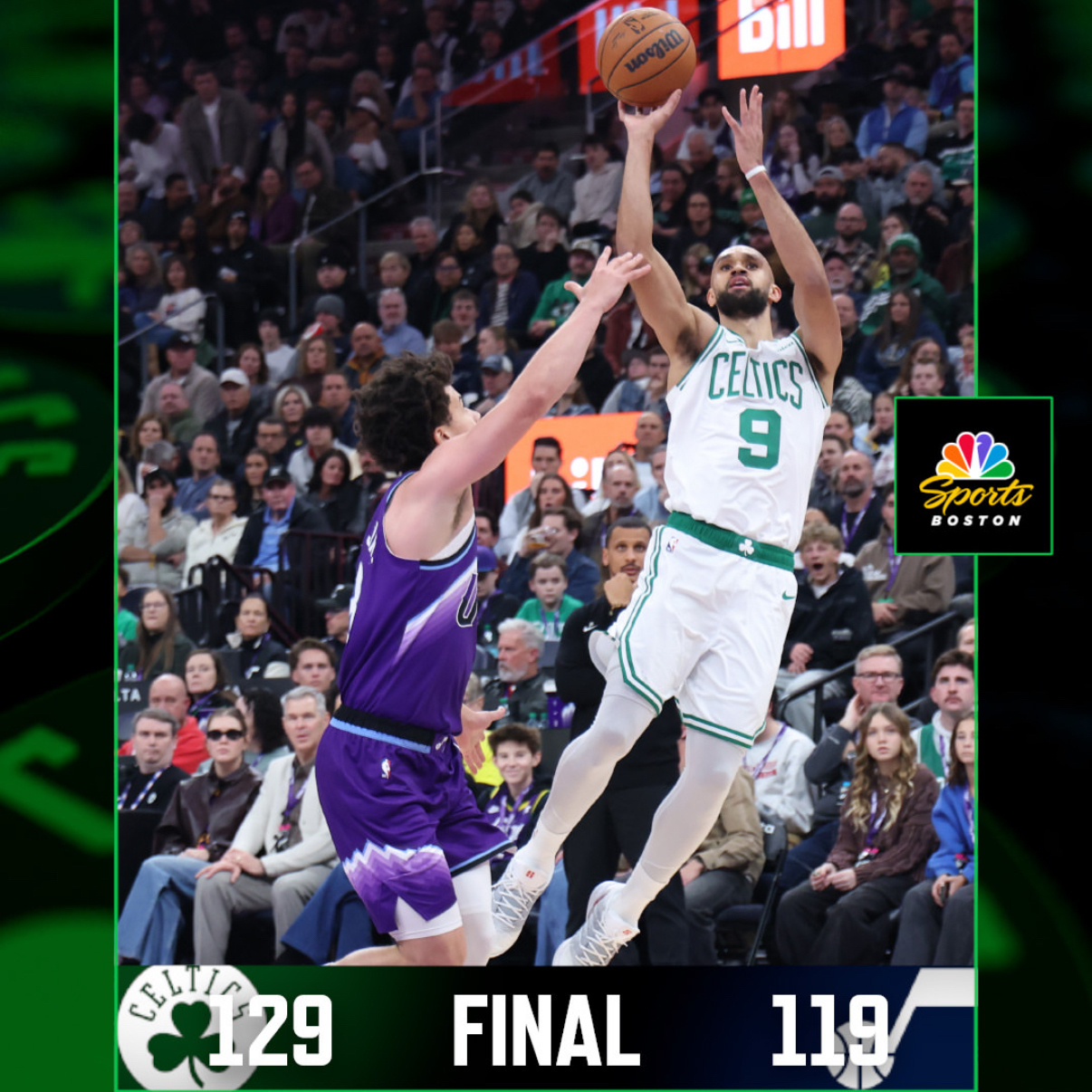 凯尔特人国度 129-119 ! Celtics Win ! 波士顿凯尔特人队客场击败犹他爵士队 ! 常规赛战绩【 20-12 】 ☘️ 💚 🏆球员数据 :Derrick White 27分7篮板7盖帽Jaylen Brown 23分6篮板10助攻Anfernee Simons 20分5篮板4助攻Payton Pritchard 18分4篮板6助攻Luka Garza 15分6篮板1盖帽Neemias Queta 12分3篮板3抢断Jordan Walsh 6分3篮板Sam Hauser 5分5篮板Hugo Gonzalez 3分4篮板1助攻Baylor Scheierman 1篮板