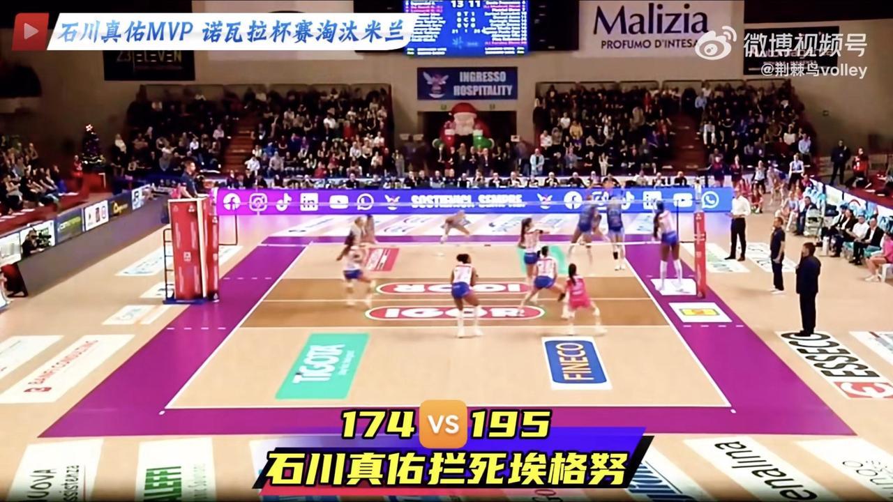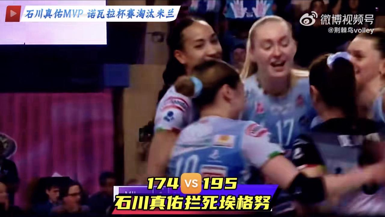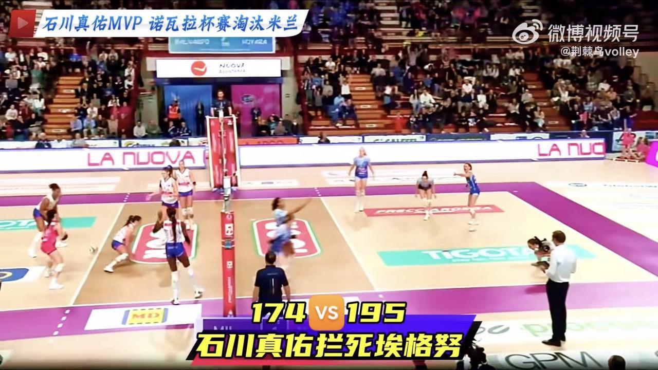 174cm的石川真佑拦死195cm艾格努的进攻,所以石川的拦网技术和起跳时间把握时机能力的优势就体现出来了!