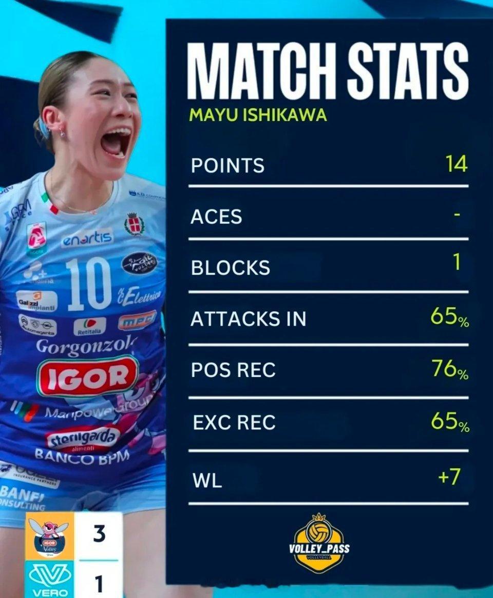 女排世界女排新闻 诺瓦拉3-1米兰石川真佑荣膺本场MVP