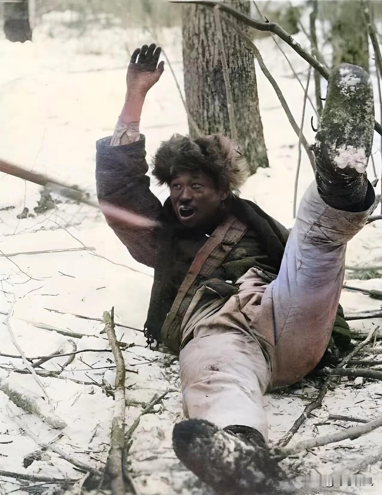 这是日本鬼子在一瞬间拍下来的照片,照片中的这个人,是东北的抗日英雄,在跟日本鬼子遭遇后不慎跌倒,通过照片能够看得出来 你仔细看这张黑白照片,画面里的英雄单膝跪地,上身前倾,像是刚从雪地里爬起来又被惯性带倒。他的棉帽掉在一旁,头发上沾着雪沫和泥土,脸上冻得通红,却没半点惧色,眼睛死死盯着镜头方向——那正是日军枪口对准的地方。这张照片不是什么宣传摆拍,是1936年冬天,日军在吉林延边的山林里突袭抗联小分队时,一名随军记者随手拍下的“战利品”,直到上世纪80年代,才在日本军部解密档案中被发现。 照片里的英雄名叫马德山,当年才28岁,是东北抗日联军第6军1师的连长。没人能想到,这个看起来身材魁梧的汉子,老家原本在山东莱阳,16岁跟着闯关东的乡亲来到东北,在鹤岗煤矿当矿工。日军侵占东北后,煤矿被日军霸占,工友们稍有反抗就被打骂甚至杀害,马德山的叔叔因为偷偷给抗联送粮食,被日军活活扔进矿井。国仇家恨凑到一起,他连夜跑上山,找到了正在招兵的抗联队伍。 刚加入抗联时,马德山连枪都不会用。寒冬腊月里,他们在深山老林里露营,没有帐篷就钻雪窝,盖着破麻袋片取暖;粮食不够,就煮树皮、挖野菜,偶尔缴获日军的罐头,他总是让给受伤的战友。有老兵回忆,马德山学射击特别刻苦,雪地里趴着练瞄准,手指冻得肿成胡萝卜,却从没喊过一声疼。短短两年时间,他就从一个普通战士成长为连长,带着队伍在佳木斯、鹤岗一带打游击战,先后参与了17次战斗,击毙日军30多人,还缴获了20多支步枪。 1936年12月的那次遭遇战,马德山带着8名战士执行侦察任务,没想到在返回营地的路上,遭遇了近百名日军的伏击。当时天刚蒙蒙亮,山林里的积雪没到膝盖,日军凭借人数和装备优势,把他们逼到了一处山坳里。马德山让战友们分头突围,自己带着两名机枪手殿后。激战中,他的左腿被流弹击中,鲜血瞬间浸透了棉裤,在雪地上留下一道长长的血痕。他咬着牙继续射击,直到子弹打光,才抽出背上的大刀,朝着冲上来的日军扑过去。 就是在扑向日军的瞬间,脚下的积雪突然塌陷,马德山不慎跌倒。日军见他失去反抗能力,没有立刻开枪,而是让记者拍下这张照片,想以此炫耀“战果”。可他们没想到,照片里的马德山虽然身处绝境,眼神里却满是刚毅,那是宁死不屈的气节,是中国人骨子里的硬气。照片拍完后,日军将马德山押往鹤岗监狱,对他严刑拷打,逼他说出抗联的藏身之处。面对日军的辣椒水、老虎凳,马德山始终只有一句话:“要杀要剐随便,想从我嘴里套出一个字,没门!” 1937年2月,在鹤岗的刑场上,马德山被日军残忍杀害,年仅29岁。他的遗体被战友偷偷收葬在山林里,直到新中国成立后,当地政府才找到他的坟墓,为他立了墓碑。这张被日军当作“战利品”拍摄的照片,最终成了他们侵略中国的铁证,也定格了抗日英雄最悲壮的瞬间。 在那个山河破碎的年代,像马德山这样的抗日英雄还有很多。他们没有先进的装备,没有充足的物资,却凭着一腔热血,在冰天雪地的东北坚持斗争了14年。他们用生命守护着家国,用鲜血唤醒了国人的斗志。如今,我们生活在和平年代,不用再经历枪林弹雨,不用再忍饥挨饿,但我们永远不能忘记,今天的幸福生活,是无数像马德山这样的英雄用生命换来的。 历史不该被遗忘,英雄不该被辜负。每一张老照片背后,都藏着一段刻骨铭心的故事;每一位抗日英雄,都值得我们永远缅怀。他们的气节,是中华民族的精神脊梁;他们的牺牲,让我们更加珍惜当下的和平。 各位读者你们怎么看?欢迎在评论区讨论。