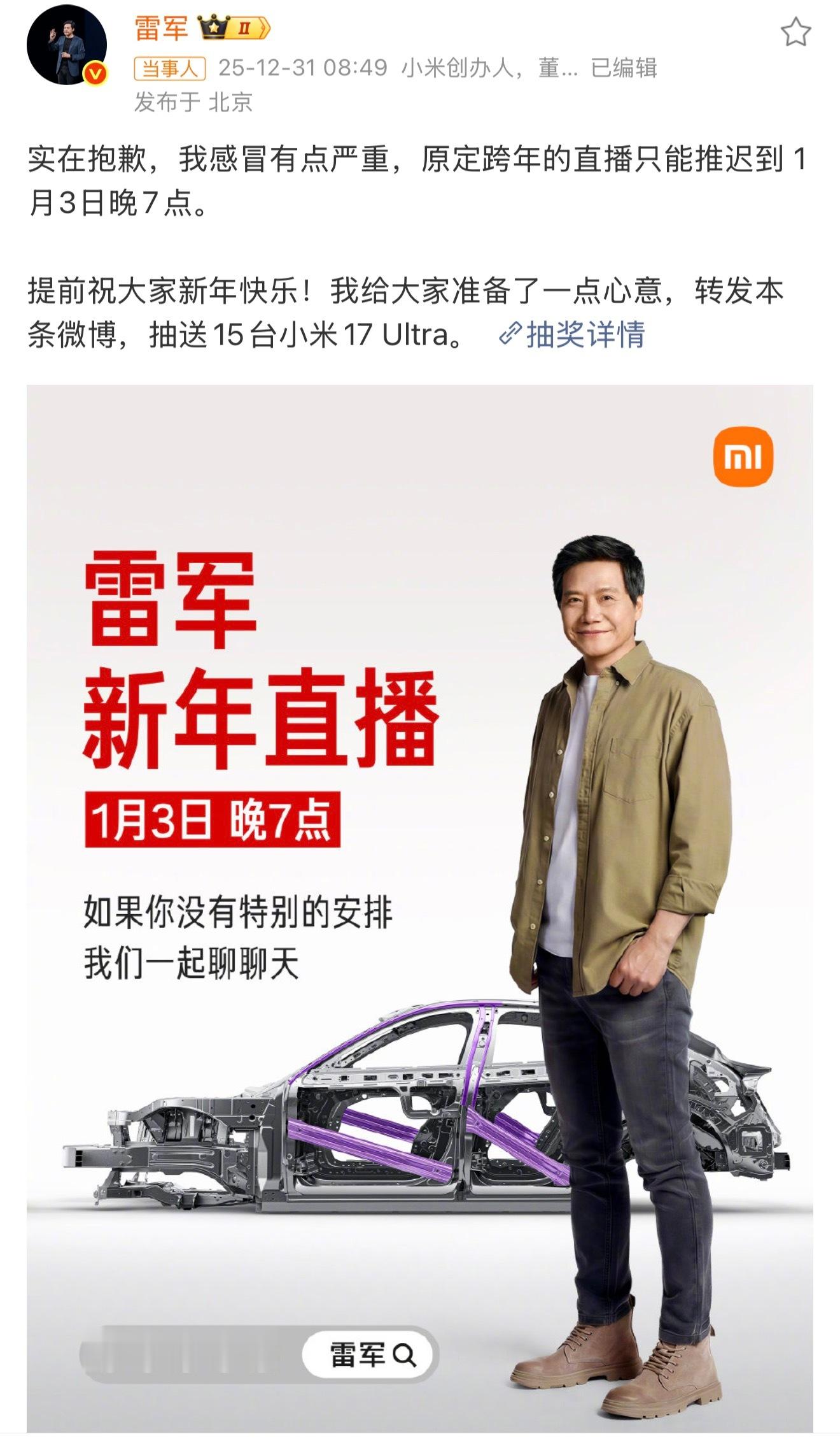 雷军跨年直播推迟有点可惜,但好事不怕晚,等就是了。还有,评论区的黑子歇歇吧,累不