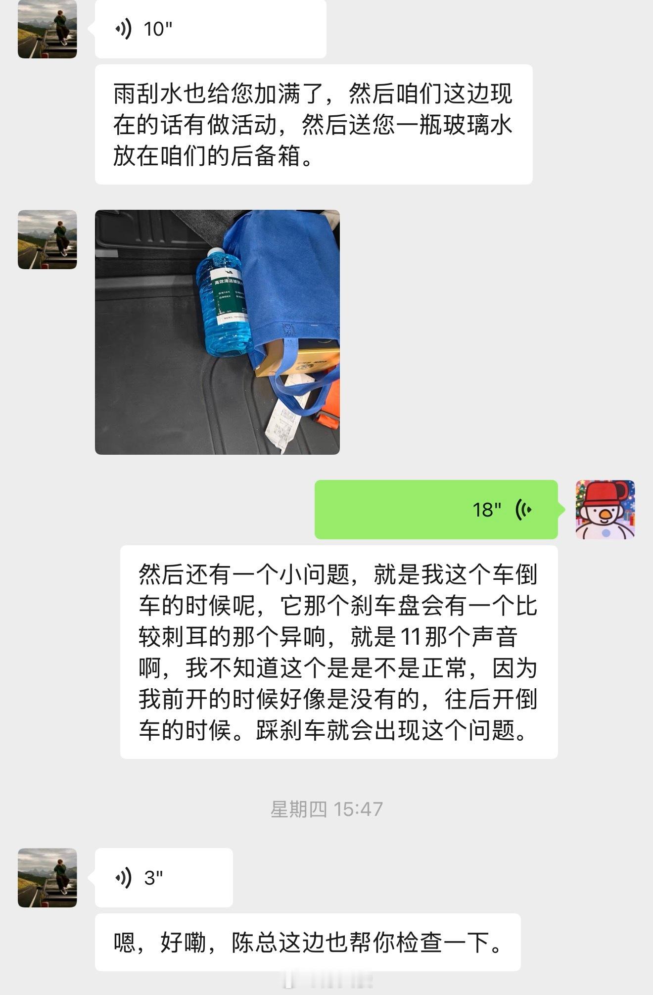 送 L9 来做提车之后第一次小保养了,换了增程器机油,换了空气滤芯,售后送了一堆东西给我,什么底盘检查、洗车、玻璃水、矿泉水,最后充满电再让代驾交车给我。虽然这些都是小事,但我作为车主是感觉服务到位了,不错,表扬一下。