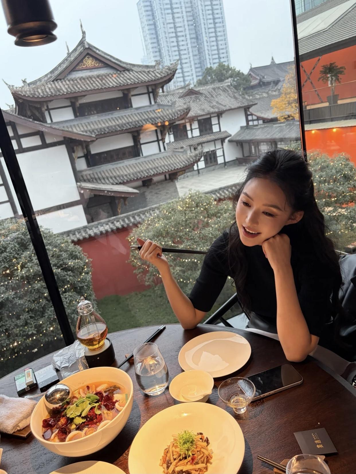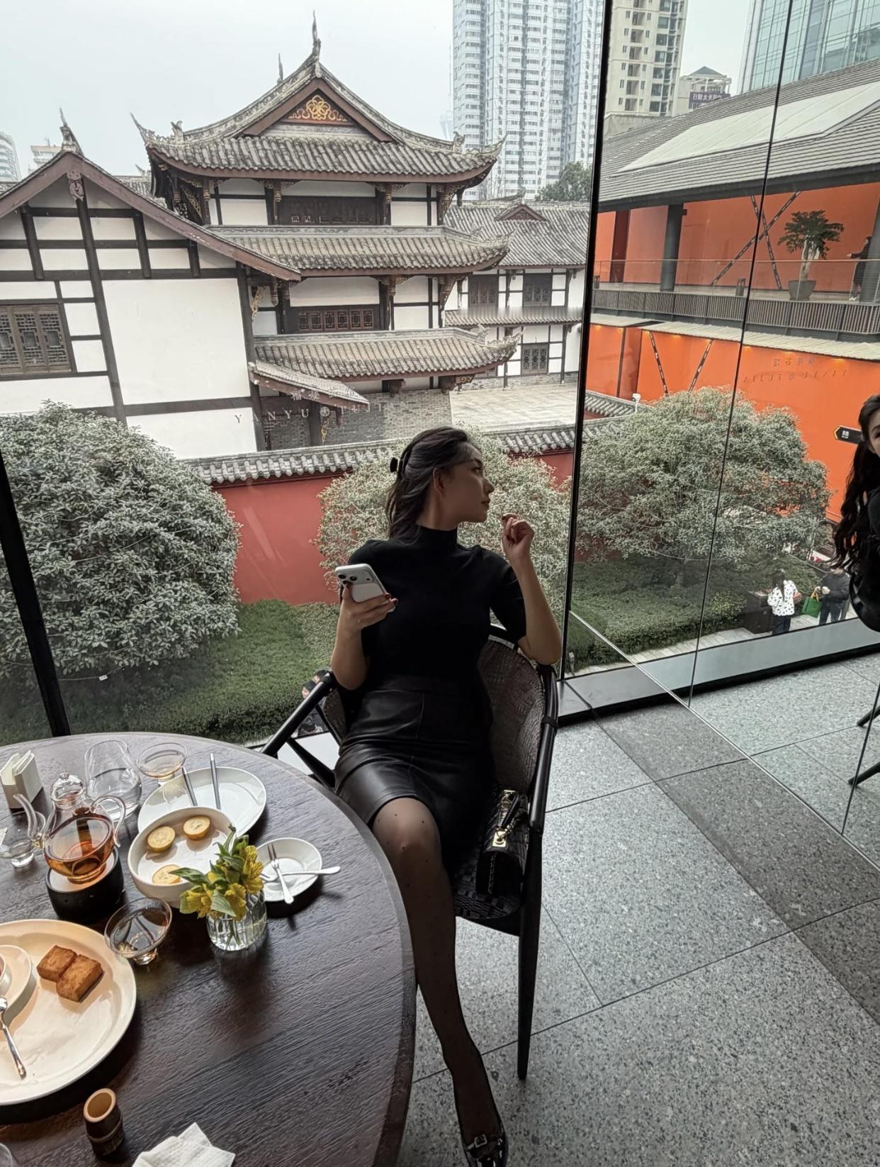 美妞们日常穿搭分享这美女在咖啡厅自拍,背景好有古风。