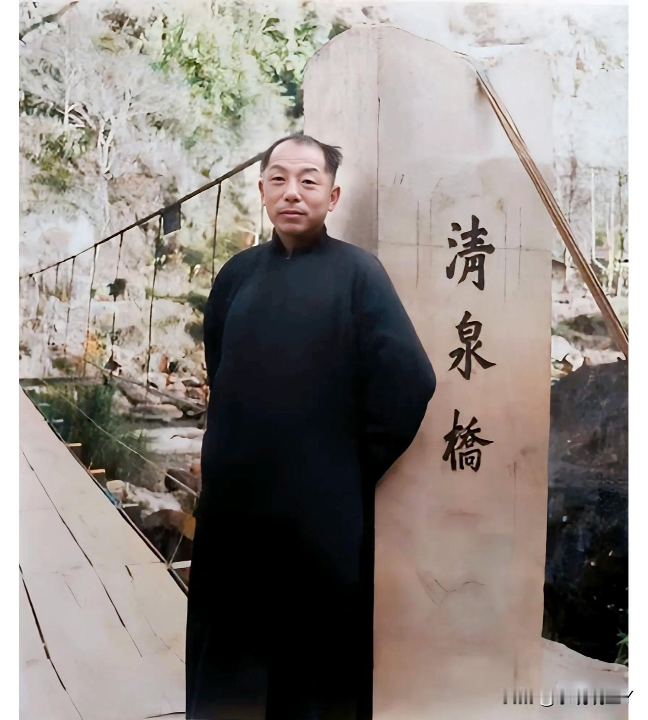 一九四九年,张学良幽禁在台湾期间到桥上散步时的留影老照片。这绝非演戏,也不是电视剧里的演员,而是他当时身着长袍的真实样貌。每天都是无所事事,这一年他四十八岁