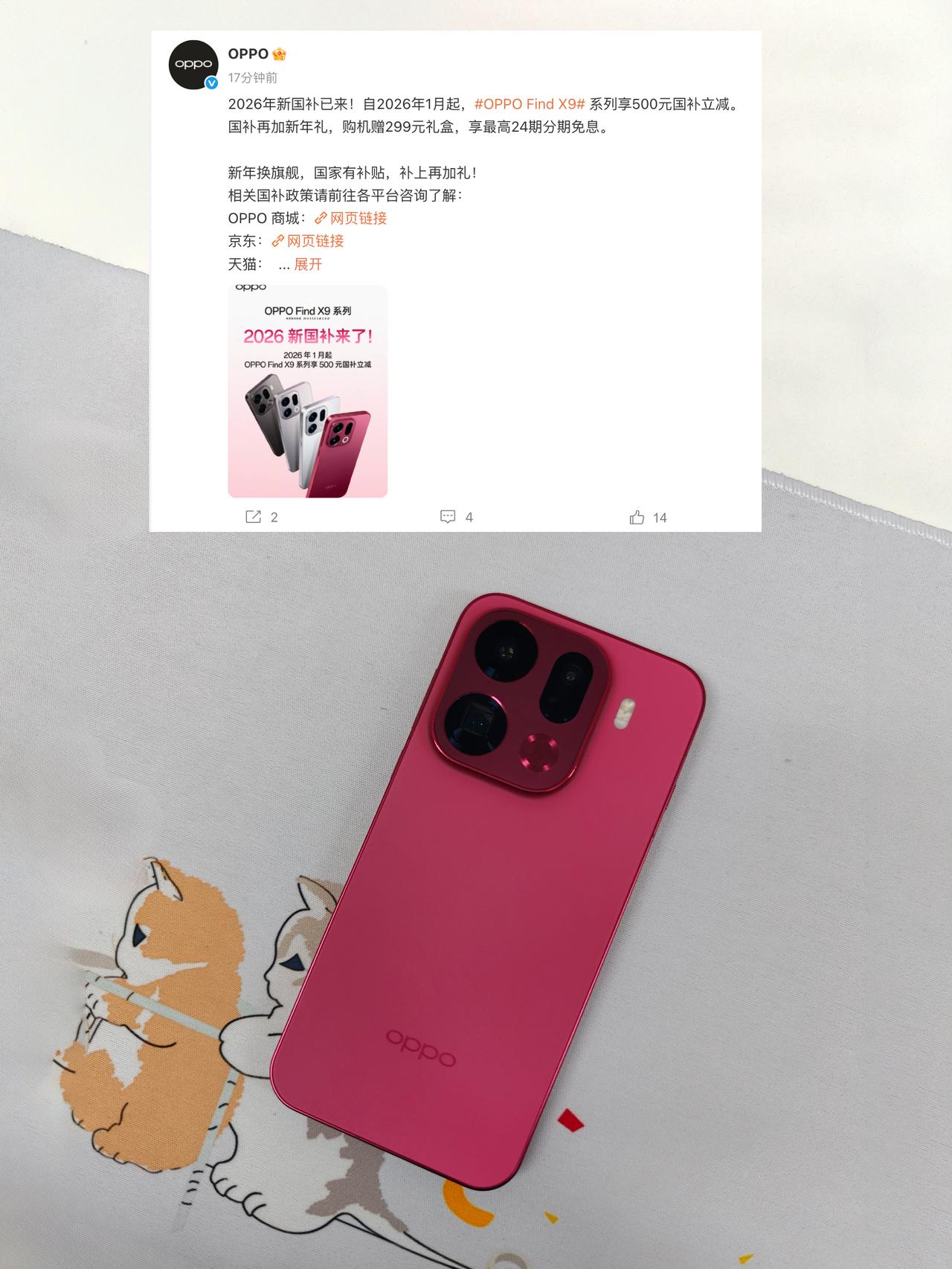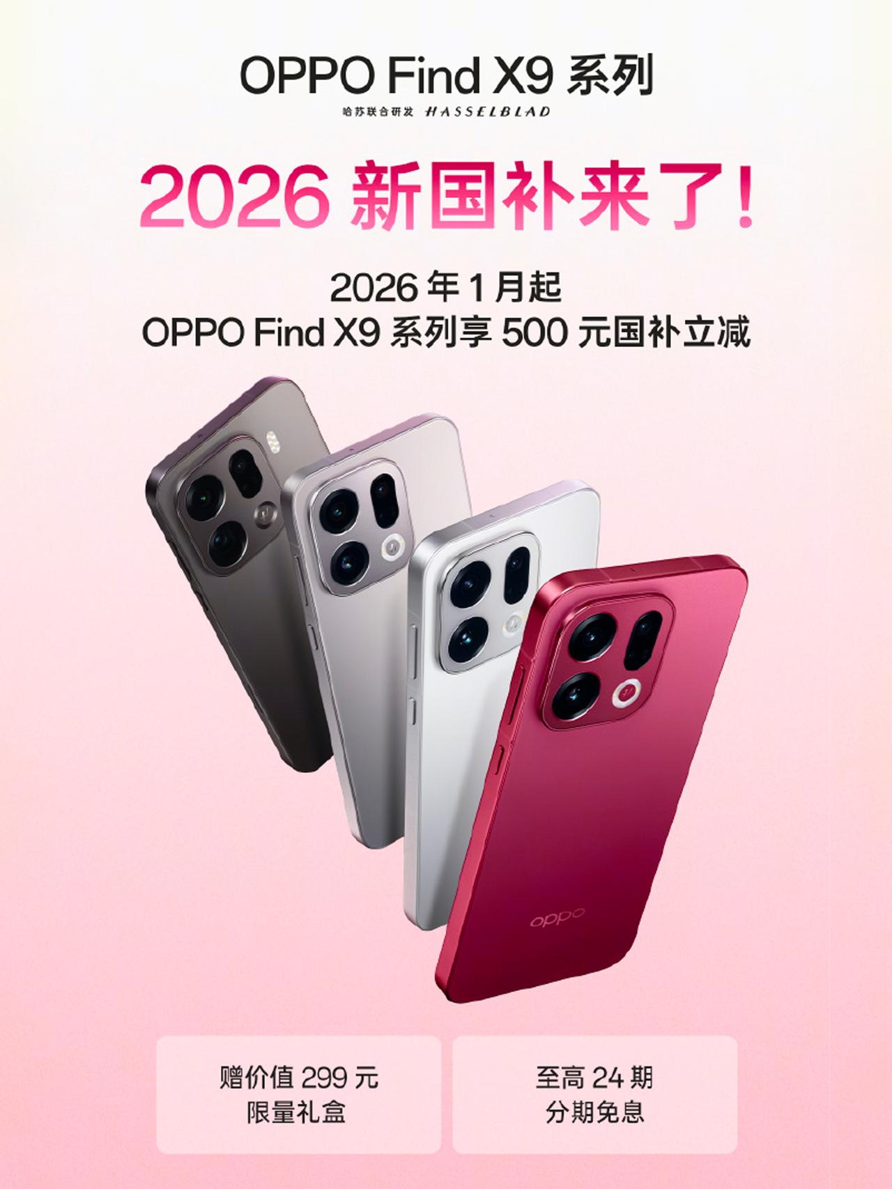 官方确认了!国补+299礼盒+24期 院长火速来报!刚蹲到OPPO 官方实锤——Find X9系列的2026年新国补,1月份直接开整! 官方明牌:自2026年1月起,Find X9全系都能享这波三重礼👇 ✅ 500 元国补直接立减,不用算满减,到手就是底价 ✅ 白嫖价值 299 元的限量礼盒,选择还很丰富 (有莎莎礼盒/线条小狗礼盒/新品上市礼盒和JD碎屏险等多选一) ✅ 至高 24 期免xi轻松付,月供无压力,换机没负担 👇🏻OPPO Find X9 12GB+256GB:原价 4399 ➡️ 国补价 3899 16GB+256GB:原价 4699 ➡️ 国补价 4199 12GB+512GB:原价 4999 ➡️ 国补价 4499 16GB+512GB:原价 5299 ➡️ 国补价 4799 16GB+1TB:原价 5799 ➡️ 国补价 5299 👇🏻OPPO Find X9 Pro 12GB+256GB:原价 5299 ➡️ 国补价 4799 12GB+512GB:原价 5699 ➡️ 国补价 5199 16GB+512GB:原价 5999 ➡️ 国补价 5499 之前首发没抢到追光红的宝子,现在这波“官方福li+现货”直接爽翻——既省了💰,又能抱走礼盒,这波不冲真的亏! 你们准备冲标准版还是 Pro? 2026国补 OPPOFindX9 OPPOFindX9Pro 国补 新年换新机 数码避坑指南 院长分享 24期免息