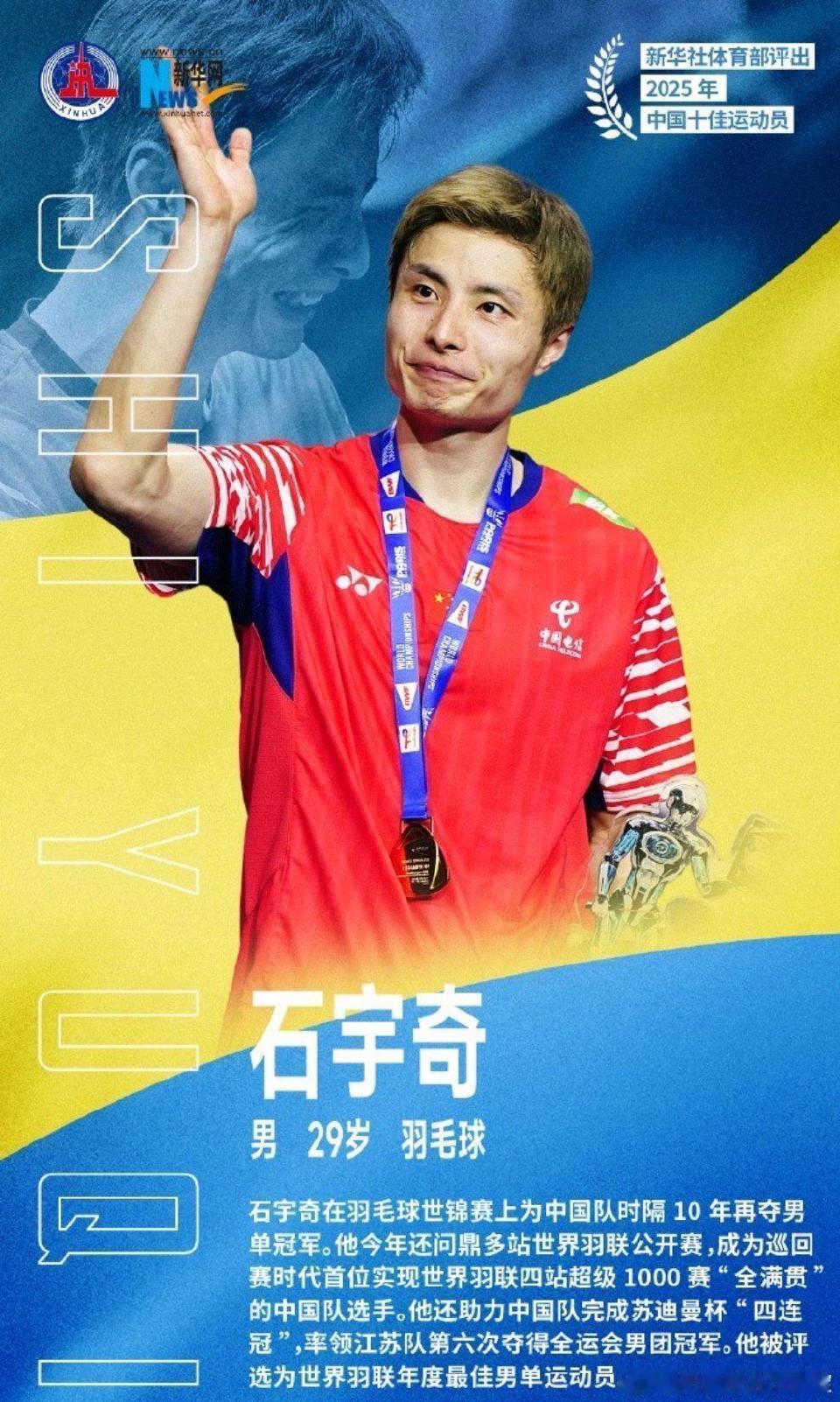 石宇奇世锦赛冠军:为中国队时隔10年再夺男单冠军,终结世锦赛中国男单"十年冠军荒" 超级1000赛"全满贯":成为巡回赛时代首位包揽四站超级1000赛冠军的中国选手 积分达110,397分,突破11万分大关,创中国男单历史纪录,连续52周霸榜世界第一 全年44战40胜,胜率高达90.9%,外战不败 助力中国队完成苏迪曼杯"四连冠",率领江苏队第六次夺得全运会男团冠军 看到这份成绩单,真的忍不住感慨,国羽男单的球迷,终于熬出头了!这哪是一份普通的战绩表,这是石宇奇硬生生用拳头,把中国男单尘封十年的世锦赛男单冠军拿回来,把所有的遗憾和憋屈,全都打了出去,这份荣光,等了整整十年,太解气,也太痛快了。 谁都知道,这十年的国羽男单,真的太难了。从谌龙之后,男单赛场青黄不接,大赛冲冠屡屡失利,一次次拼到最后却铩羽而归,世锦赛的男单冠军宝座,咱们空了整整十年,每次看着外协选手登顶,心里都憋着一股劲儿。而今天,石宇奇做到了,他把这十年的冠军荒彻底终结,把属于中国男单的尊严和底气,狠狠挣了回来。 这份成绩单上的每一项,拿出来都是硬邦邦的实力,没有半点水分。解锁超级1000赛全满贯,成了咱中国男单第一人,四大顶级赛场的冠军全包圆,这份统治力真的没得挑;积分破11万,刷新中国男单的历史纪录,还一连52周稳坐世界第一,这个排名不是靠运气凑的,是一场场硬仗实打实拼出来的;全年打44场赢40场,胜率飙到90.9%,最牛的是外战一场没输,面对印尼、丹麦、日本这些老对手,场场硬刚场场赢,这份外战不败的金身,真的给国羽男单撑足了腰。 没人能随随便便站到顶峰,石宇奇能走到今天,背后全是不为人知的咬牙硬扛。他的职业生涯里,伤病缠过身、大赛栽过跟头、也被外界质疑过,低谷期的日子不好熬,可他从来没认怂、没放弃。默默磨技术、调心态、补体能,把每一次的挫折都当成攒劲的机会,把别人的不看好,全都化作赛场上的拼劲。如今的光芒万丈,不过是他熬过所有苦之后,应得的回报。 现在的石宇奇,早就不是当年那个毛躁的小将了。赛场上的他,打球越来越稳,进攻依旧犀利,防守密不透风,战术打得贼通透,逆风局也能沉住气慢慢磨,心态稳得不像话。他不再只是一个能冲能打的单打选手,更是能扛大旗的核心,苏迪曼杯帮国家队拿下四连冠,全运会带着江苏队登顶男团,个人荣誉拿满,团队荣誉也不拉胯,这份担当,真的太圈粉。 曾经有人说国羽男单的春天遥遥无期,可现在,石宇奇硬生生把春天给打来了。这十年的沉寂,不是落幕,而是蓄力,而石宇奇,就是那个接过接力棒,扛起国羽男单大旗的人。他用自己的战绩证明,中国男单从没有垮掉,只是需要一个人站出来,而他,就是那个人。羽毛球石宇奇 男双总决赛 石宇华 他的这份封神战绩,从来都不是终点,只是一个新的开始。正值黄金期的石宇奇,技术、心态、经验都磨到了极致,未来的赛场,只会更有看头。十年蛰伏终登顶,这样的石宇奇,真的太让人期待。那么在你心里,石宇奇的这次爆发,是不是意味着国羽男单的新时代彻底来临?他又能带着这份势头,创造多少新的传奇?