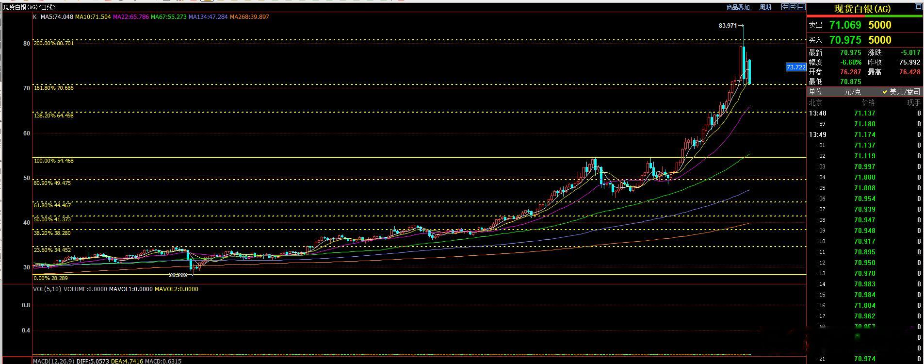 现货白银跌破71美元期货白银主力跌破17000