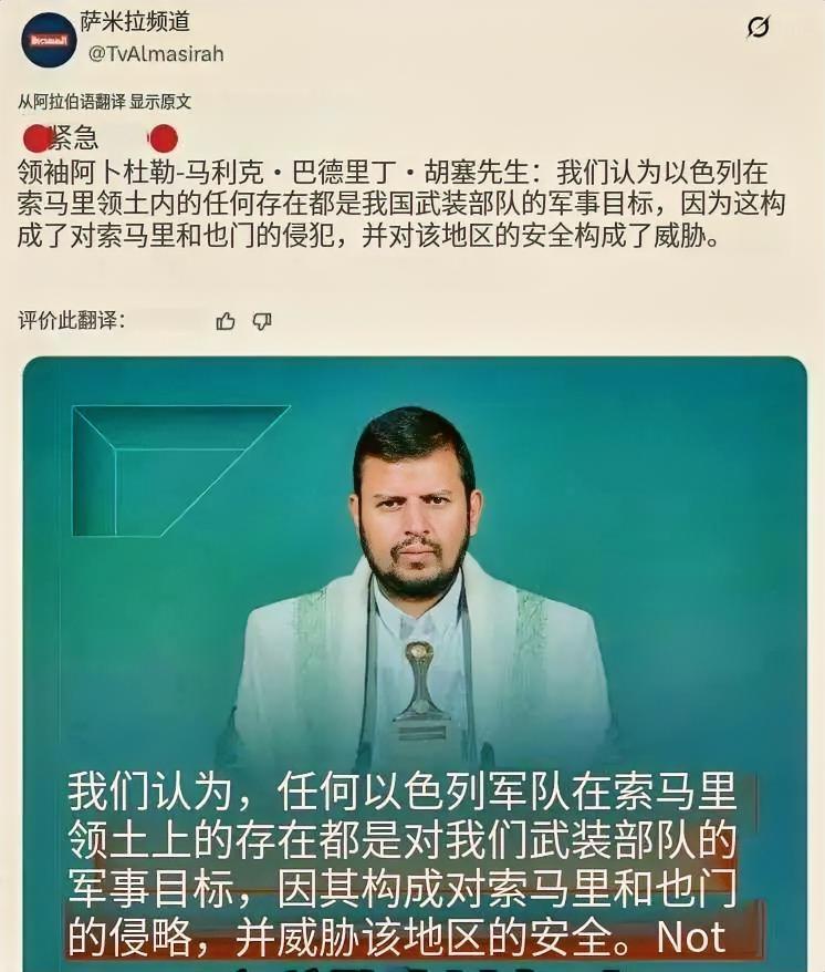 以色列于12月26日承认索马里兰为“独立主权国家”,这一决定在国际社会引发了广泛且强烈的反对。国际社会的普遍立场是,以色列违反了国际法和《联合国宪章》关于尊重国家主权和领土完整的基本原则。 国际社会对此事的反应高度一致,绝大多数国家和国际组织都表示反对。 埃及、土耳其、沙特、伊朗、巴基斯坦等在内的20多个国家,以及伊斯兰合作组织、海湾合作委员会、欧盟等均发表声明予以谴责以色列和支持索马里。 中国在安理会明确表示严重关切和坚决反对,强调索马里兰是索马里不可分割的一部分,坚定支持索马里的主权、统一和领土完整。 安理会非洲成员国家也是强烈谴责,认为此举非法且无效,并要求以色列撤销声明。同时,明确反对任何将巴勒斯坦人从加沙强行迁移至索马里兰的企图。 阿拉伯国家联盟召开紧急会议,对以色列的承认表示“无效、非法且不可接受”,并认为这是对阿拉伯国家安全的攻击。 非洲联盟更是明确反对承认索马里兰,重申其坚定支持索马里统一和领土完整的立场。 这种事怎么能少的了美国呢!美国在安理会为以色列辩护,称其有权开展外交关系,同时表示美国自身对承认索马里兰的政策没有改变。 索马里兰这块地方控制着红海与亚丁湾交汇处的漫长海岸线,西边就是吉布提,战略位置极为重要。以色列可能试图通过在索马里兰建立军事存在或获得港口准入,以扩大其在红海地区的影响力,并应对也门胡塞武装等区域的威胁。 胡塞武装对以色列承认索马里兰的行动发出了直接且明确的军事警告,认为这对其安全构成了直接威胁,并将采取对抗行动。 胡塞武装由领导人阿卜杜勒-马利克·胡塞于12月28日通过声明和电视讲话作出回应:将任何以色列在索马里兰的存在视为“军事打击目标”。称此举为针对索马里、也门及红海地区的“敌对行为”和“侵略”。 索马里兰与也门隔红海-亚丁湾相望。胡塞武装担心以色列在此建立军事或情报基地,会对其形成直接的战略夹击和军事威慑。 以色列承认索马里兰的问题与已经持续多年的也门冲突、巴以问题更复杂地纠缠在了一起,加剧了地区阵营化的对抗。