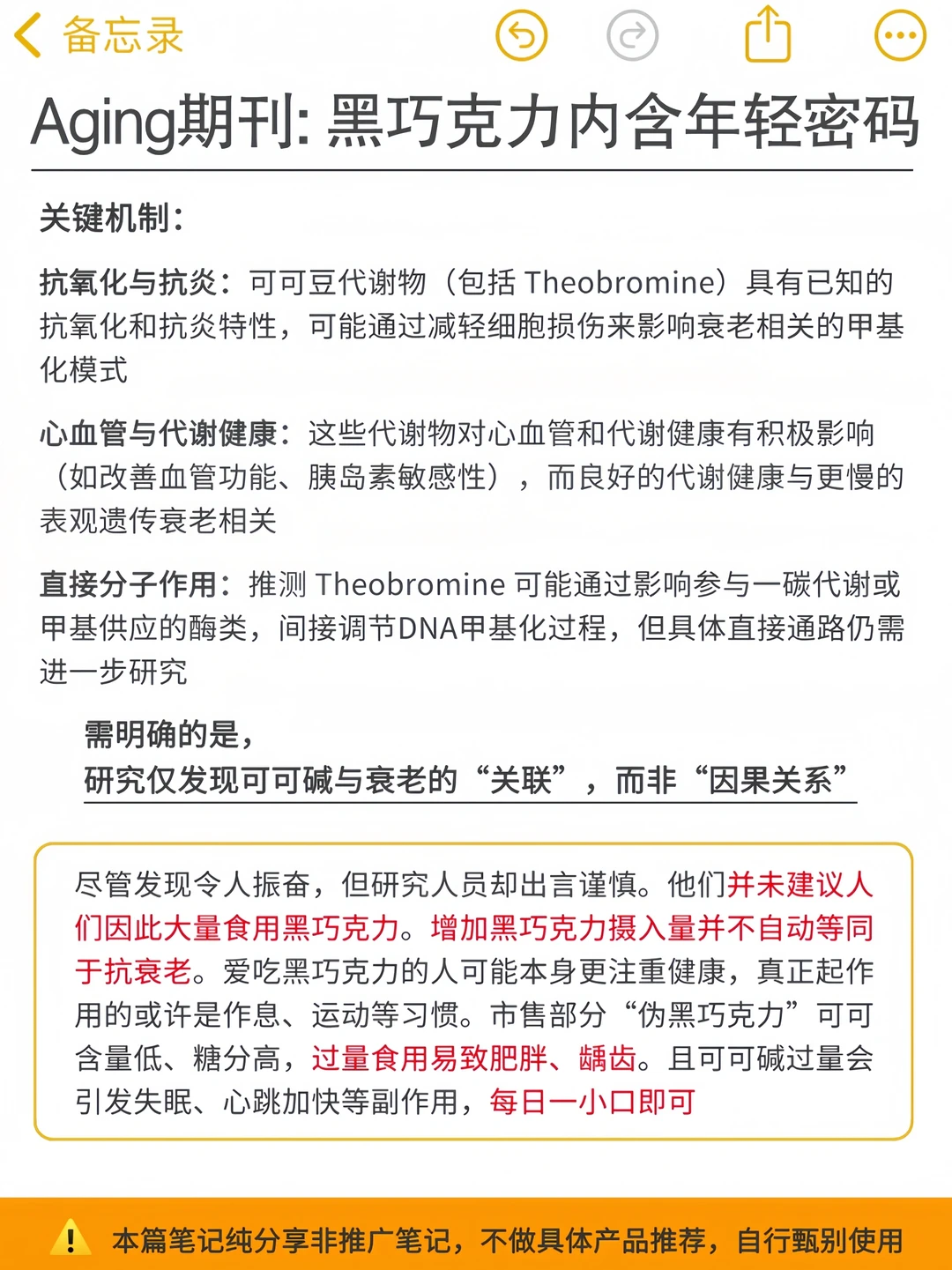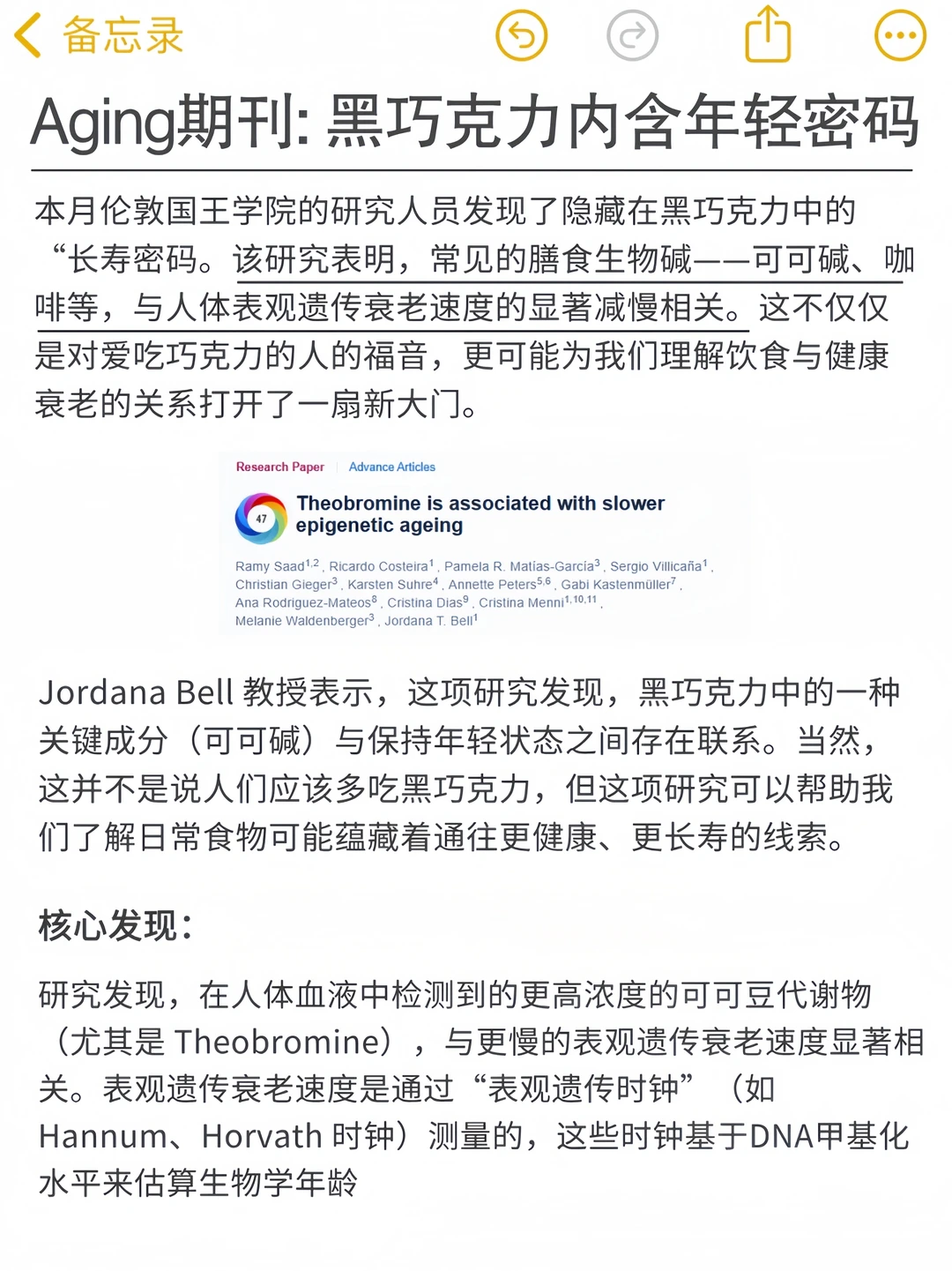 黑巧克力抗老实锤?Aging期刊:内含年轻密码