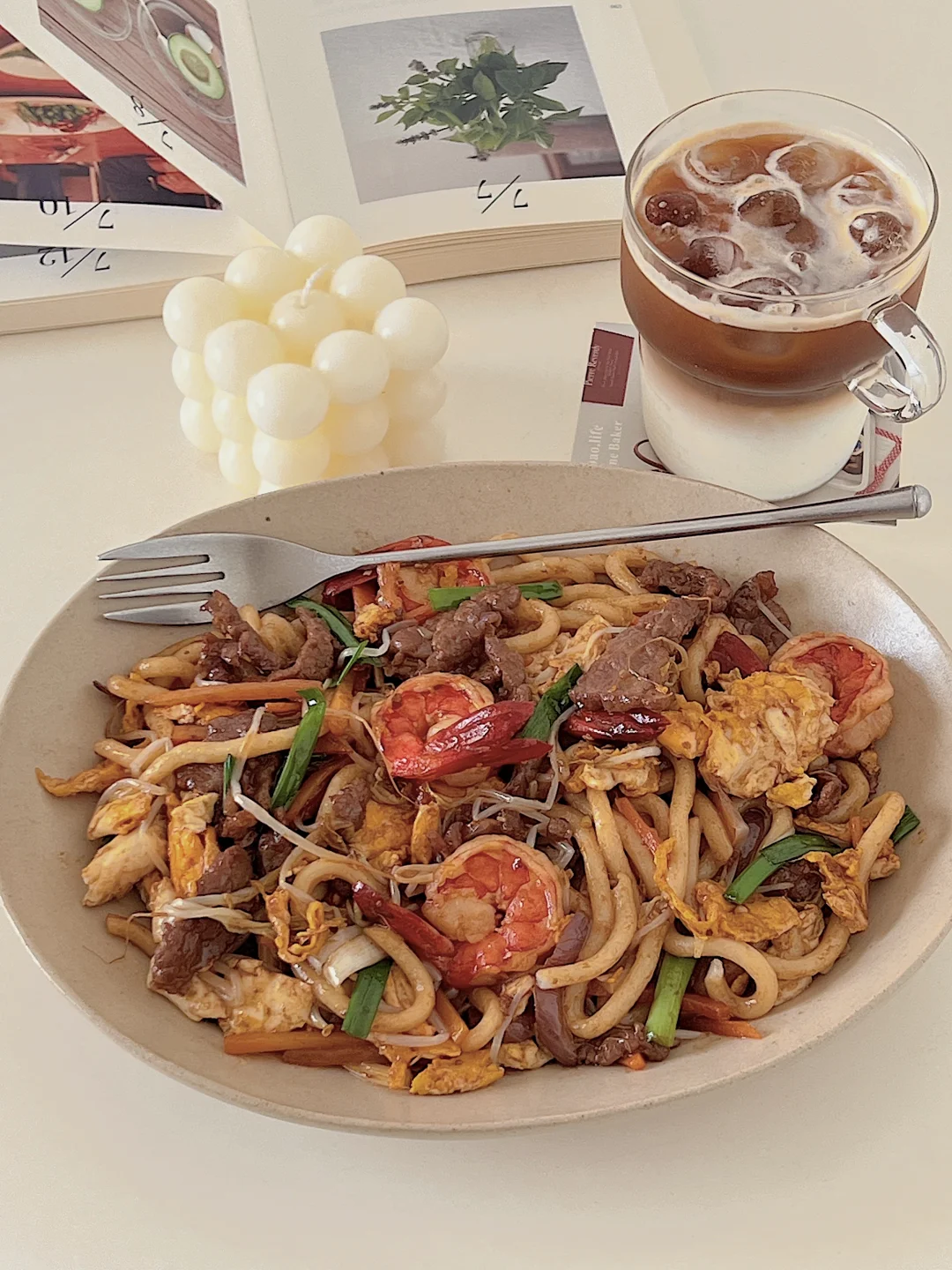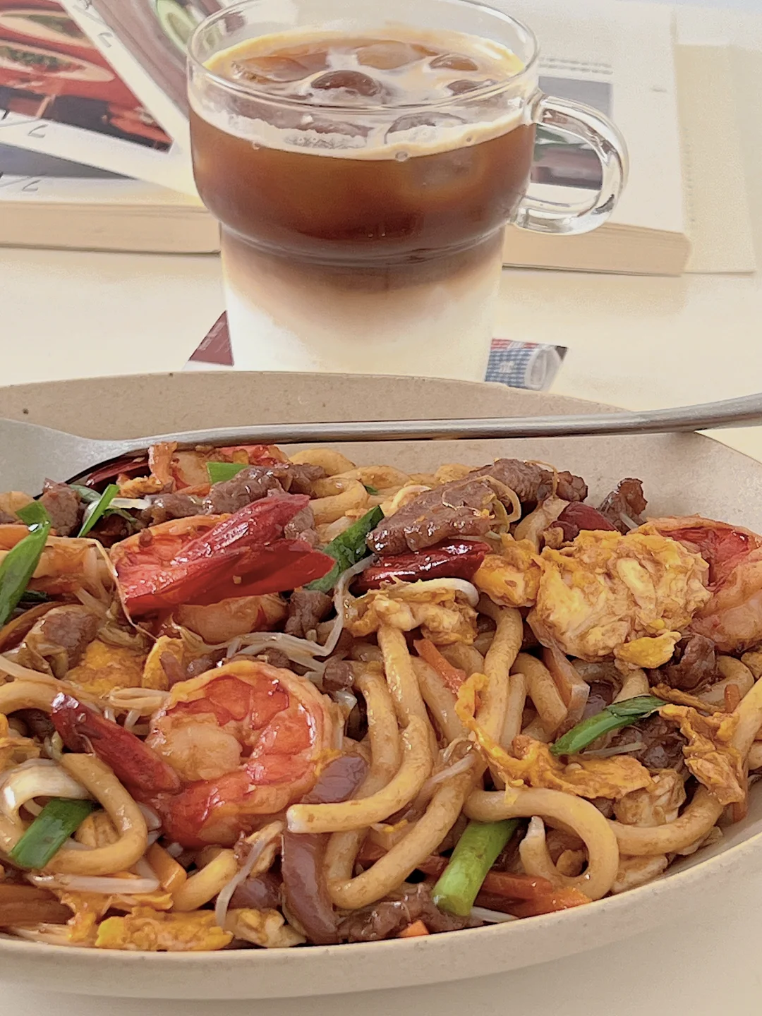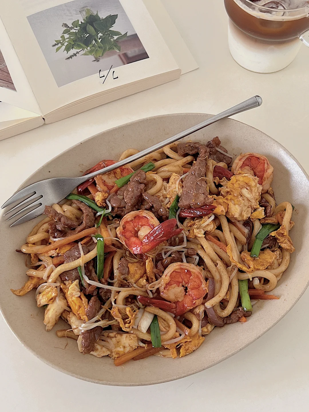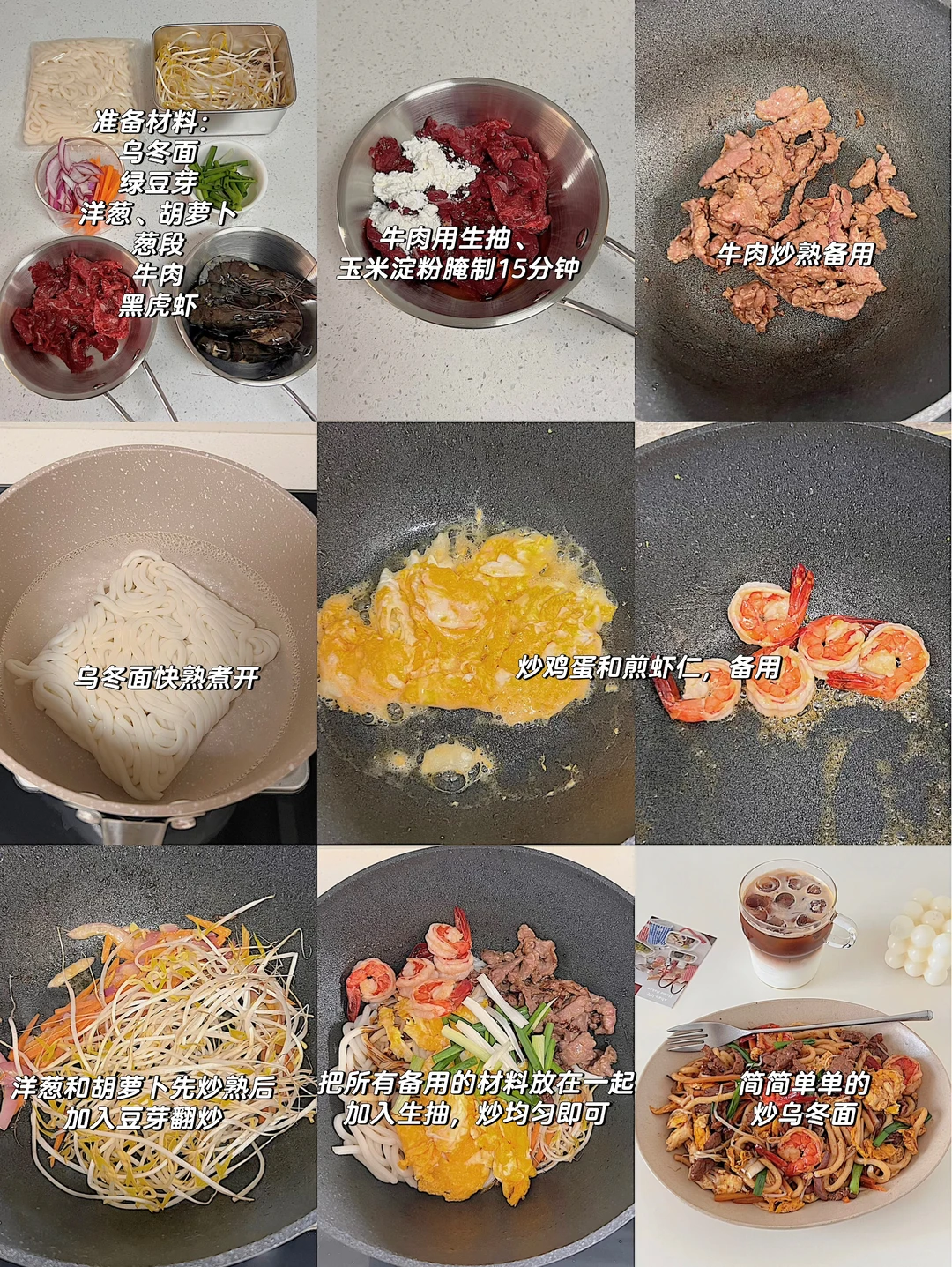 谁懂啊!这碗料比面还多的炒乌冬,一口就沦陷! 重点是‼️10分钟搞定,手残党也能秒变大厨✨ 做法见图3️⃣ ✨牛肉+生抽+淀粉腌制15分钟,炒熟备用 ✨乌冬面沸水烫1分钟捞出,过冷水更Q弹 ✨煎好鸡蛋,虾仁煎到金黄微焦 ✨洋葱胡萝卜爆香,加豆芽猛火快炒,所有食材回锅!淋两勺生抽疯狂颠锅 ✨撒葱段点缀,开动啦~ 做法都在图片里,快做给爱的人吃!