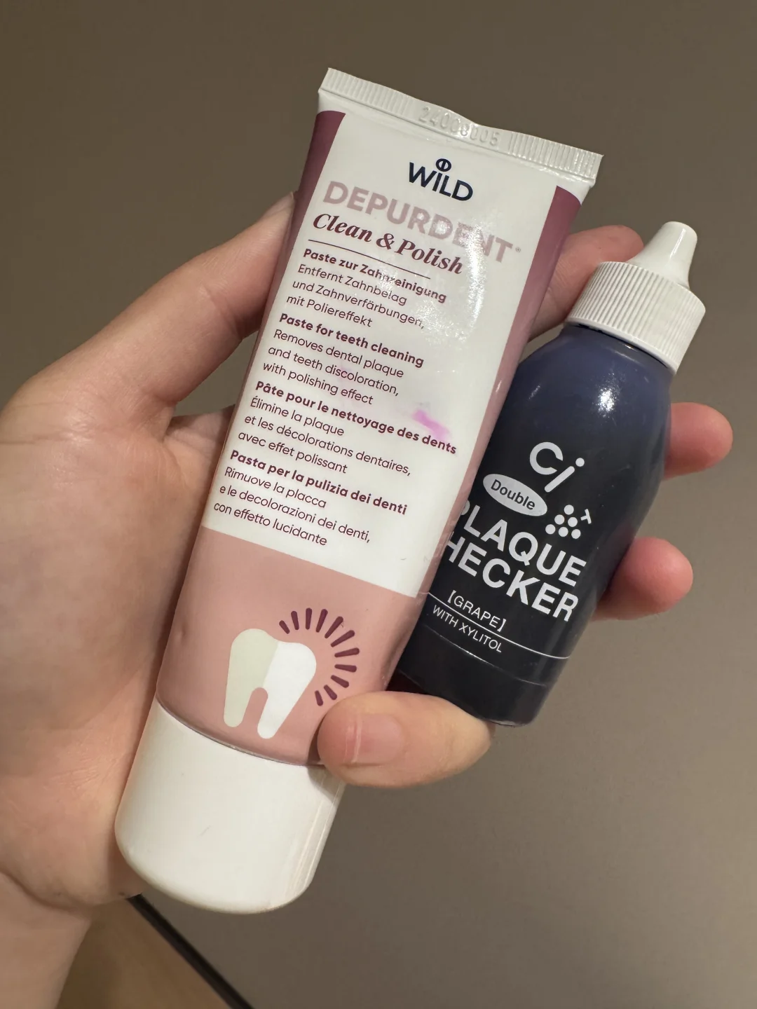 一直感觉自己虽然带了牙套,但是口腔清洁做得还不错 于是买了这个ci的牙菌斑显色剂 原来还有那么多死角没有清理到!! 平时清理的时候由于刷牙习惯,清洁的地方只有那一块儿,还有很多死角没有覆盖这个显色剂一用全部暴露。 搭配怀尔德的粉管牙膏深度清洁,(听说最近好多明星也在用,不过我用这个已经很久啦)这款牙膏对牙渍牙黄特别牛!尤其是最近期末离不开咖啡…而且特别有特色的膏体,粉色的含火山浮石微粒,一周使用2次用来抛光牙齿,我已经用空好几支了,感觉会一直回购~