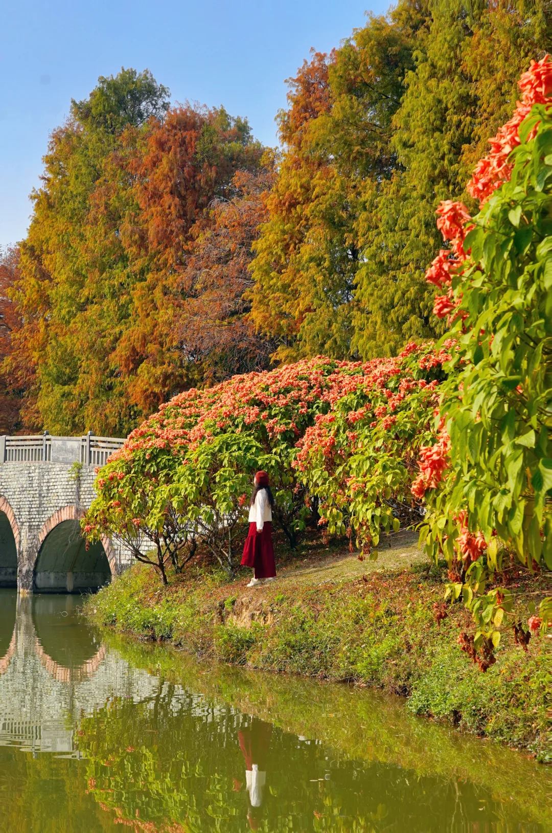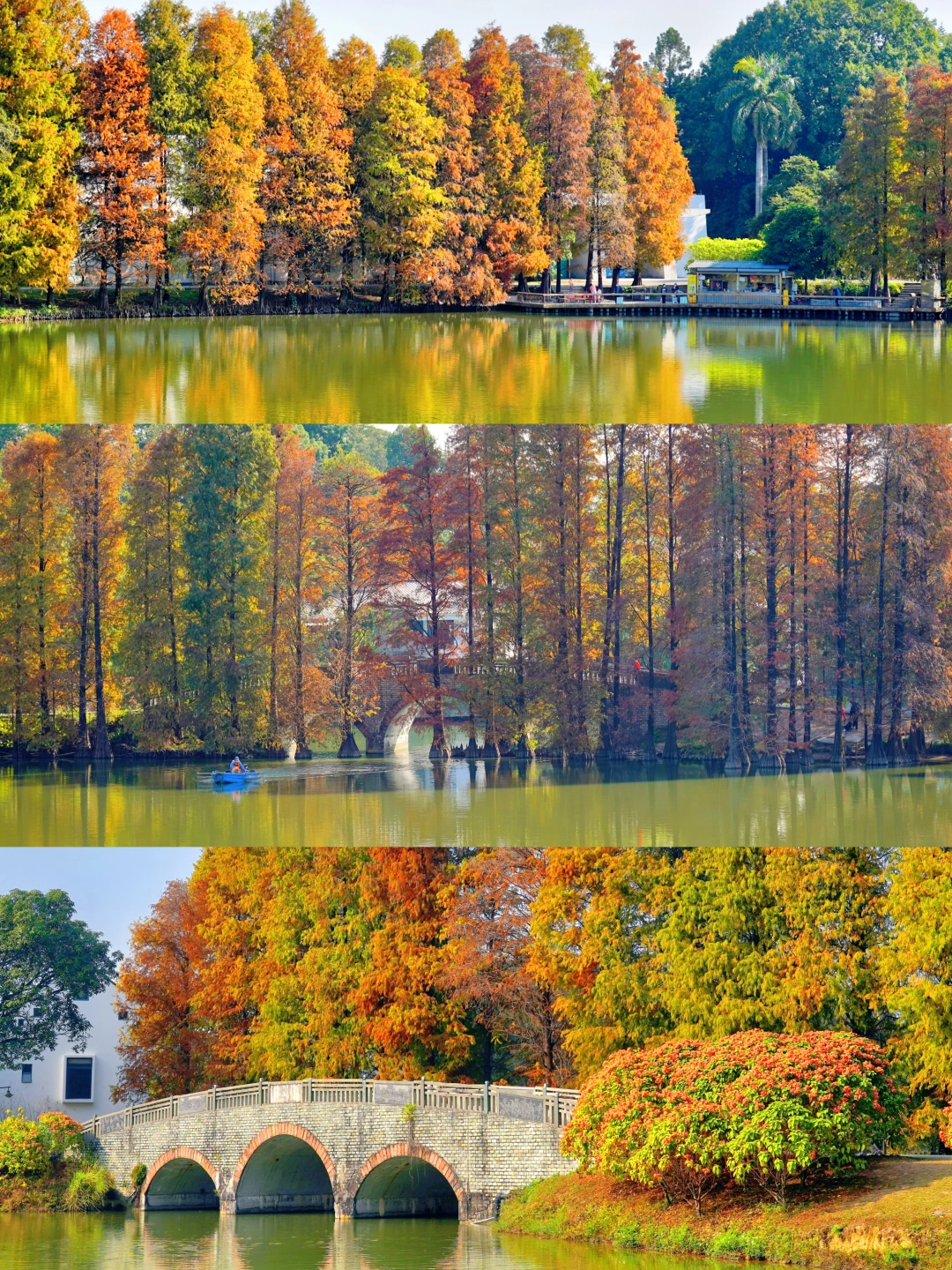 水面是天空打翻的调色盘 将一整片橙红揉碎在波纹里 笔直的落羽杉像被季节施了魔法 从树梢一寸一寸地燃起火焰 在冬日暖阳下温暖而醇厚 带着点绒毛感的暖红 和朋友寻个湖边闲坐 吃一块甜甜的草莓🍓蛋糕 度过美好的一天 - 📸 拍照打卡 tips 🔸下午3点﹣5点,光线柔和,阳光正好,拍出来的画面色彩浓郁又不会过曝 🔸赏落羽杉路线:正门➠ 樟树路➠ 彩虹桥➠ 榄仁路➠ 三拱桥➠ 琪林里➠ 龙洞琪林➠ 棕榄园 - 📍 华南植物园 ⏰ 营业时间:7:30—17:30 🚇 地铁6号线植物园站 A 出口 🚙 自驾到植物园西门有停车场 🎟 植物园门票20/人