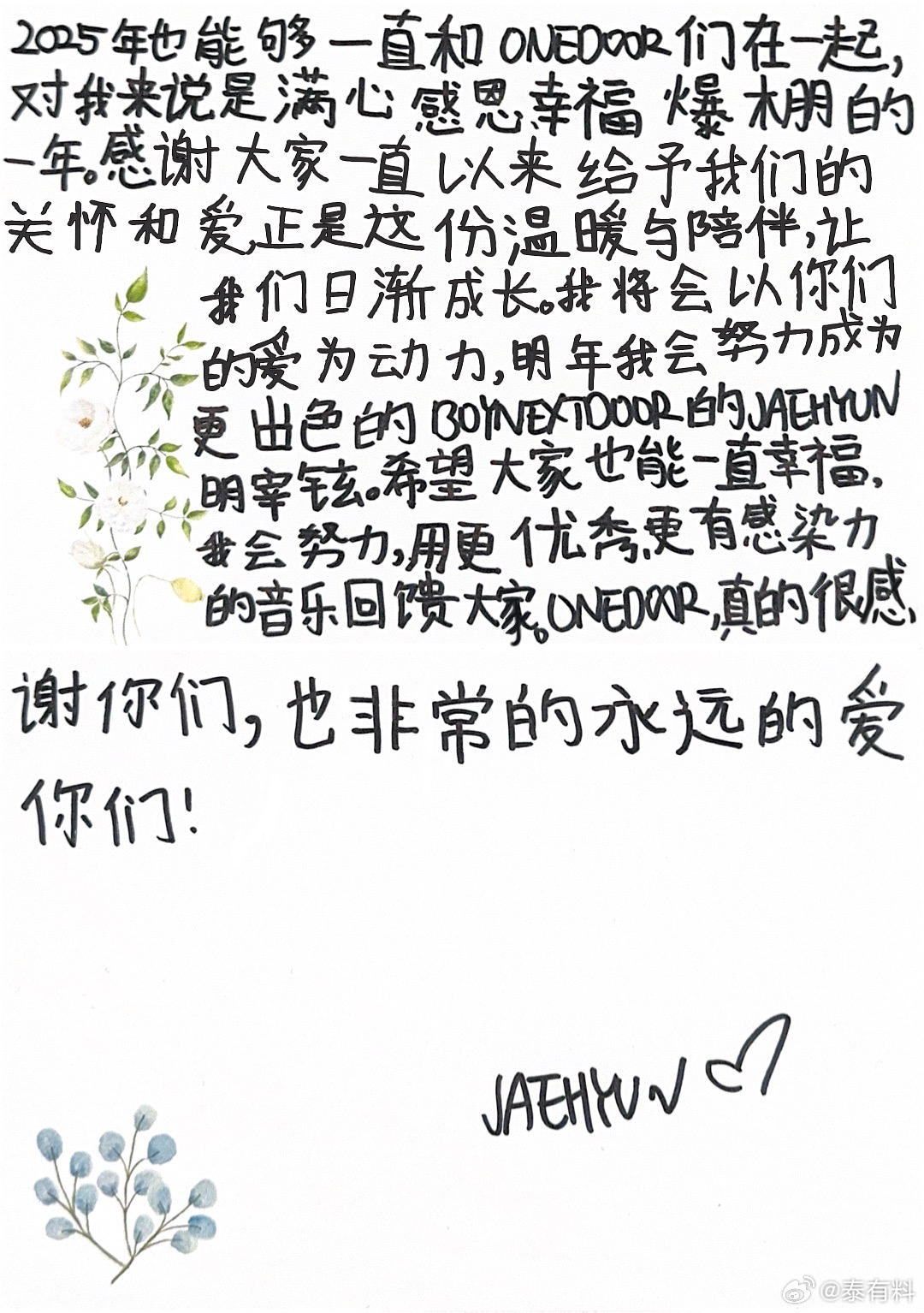 💌一封封中文手写信背后是📖正在努力的中文也是🚪对中国粉丝的认真与尊重2026的BND,真的很让人期待✨BOYNEXTDOOR2025年末手写信BOYNEXTDOOR的告白