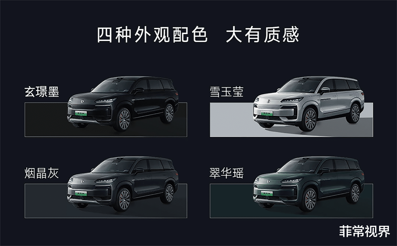 在设计上,腾势N9将中国传统建筑美学与文化智慧中的“合”融入其中。顶天立地的前脸,双星冕大灯,纵向建筑感的外观轮廓与1:2的黄金比例,营造出不可撼动的气场。全新22吋多轮辐轮毂如“神之一手”,精妙刻画出整车的力量之美。外观提供玄璟墨、雪玉莹、烟晶灰、翠华瑶四款车色。
