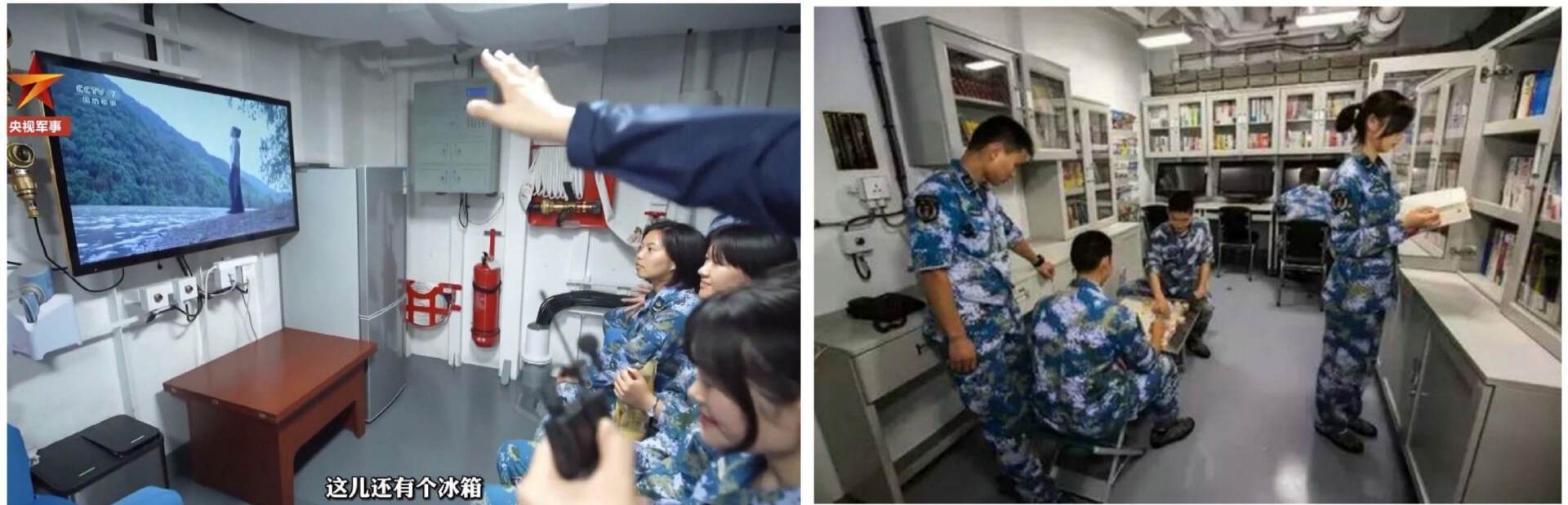 其次是拥有更好的人居环境。除了拥有更宽敞的上下铺8人间水兵舱之外(052D驱逐舰是18人间),055驱逐舰还拥有功能完备的阅览室(能够通过卫星观看国内电视节目)和健身房,这让055的舰员不仅能够吃好睡好,还能在闲暇之余快速放松,从而长时间保持良好的生理和心理状态。